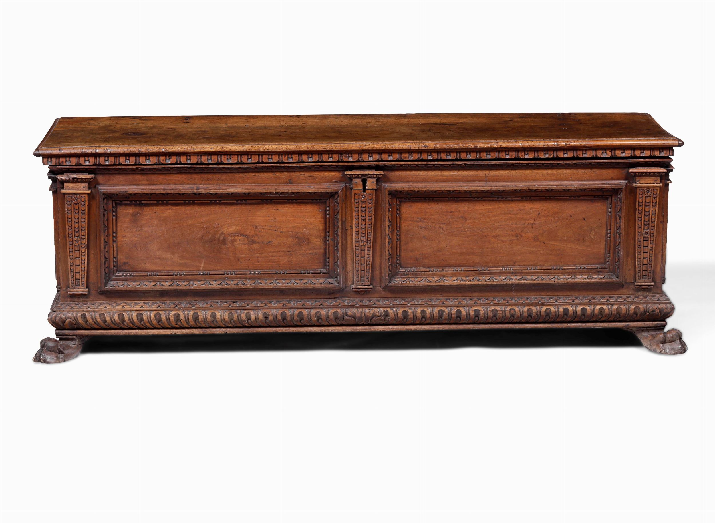 Cassapanca in noce intagliato. XVIII-XIX secolo
