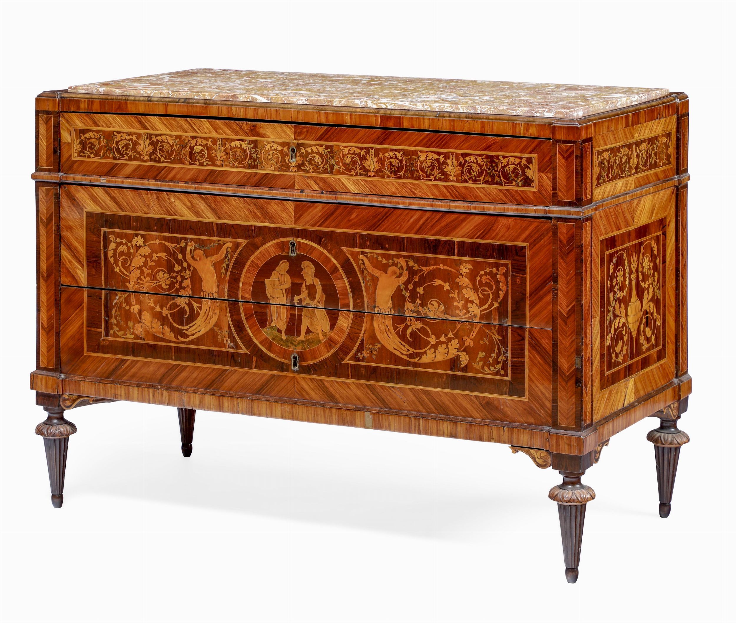 Cassettone lastronato, intarsiato e filettato. Lombardia XVIII secolo