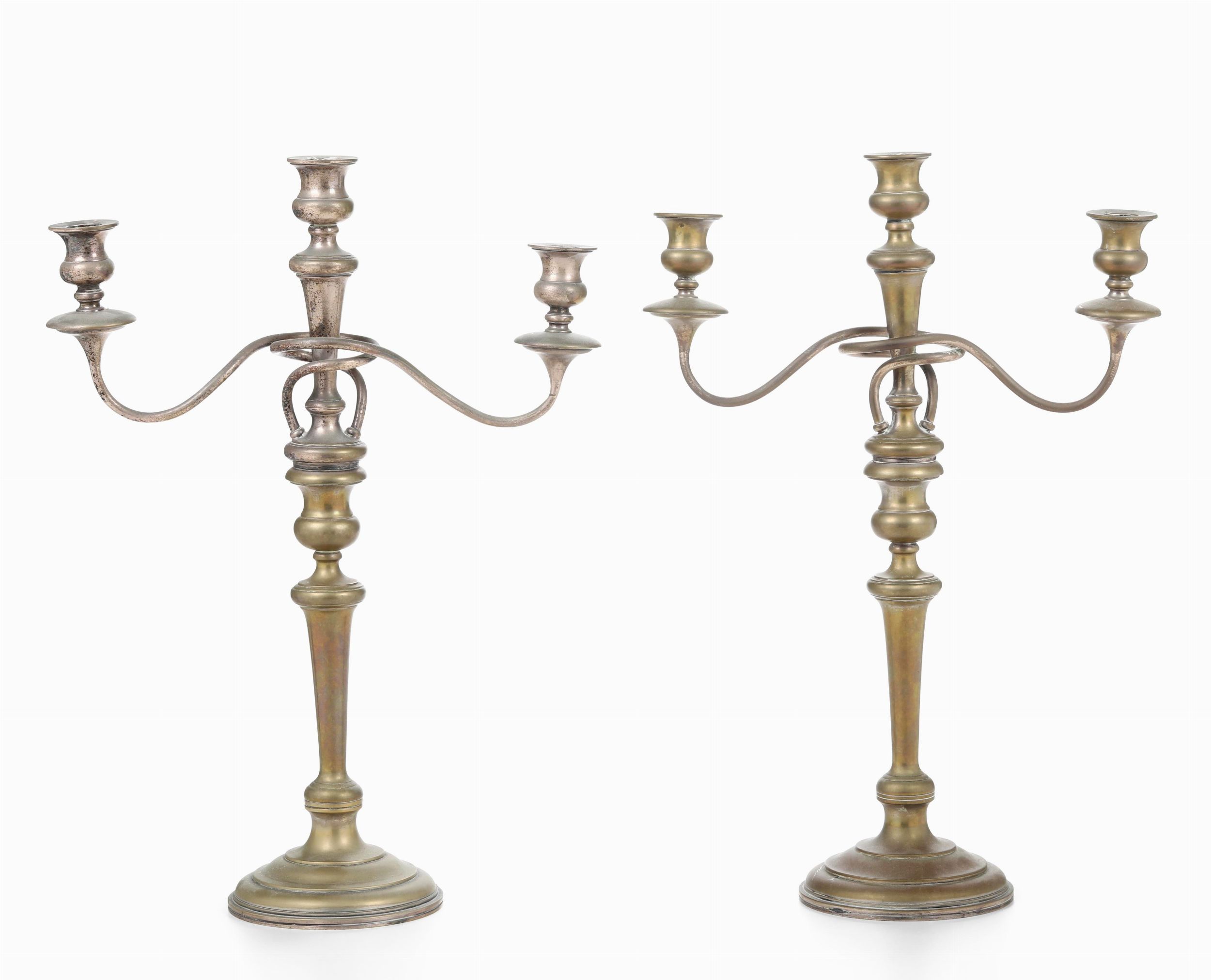 Coppia candelabri a tre luci in metallo argentato. XX secolo