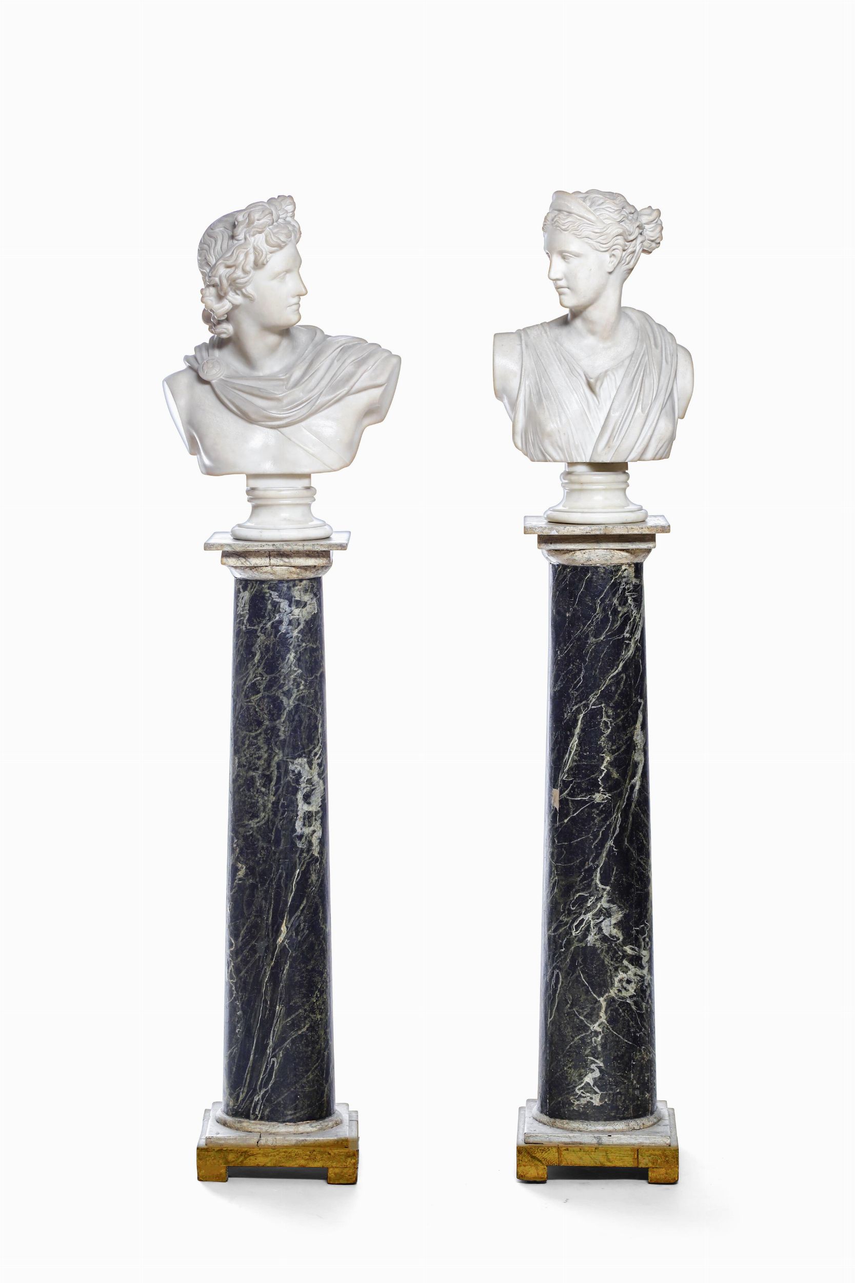 Coppia di busti in marmo raffiguranti l'Apollo del Belvedere e la Venere di Versailles. [..]