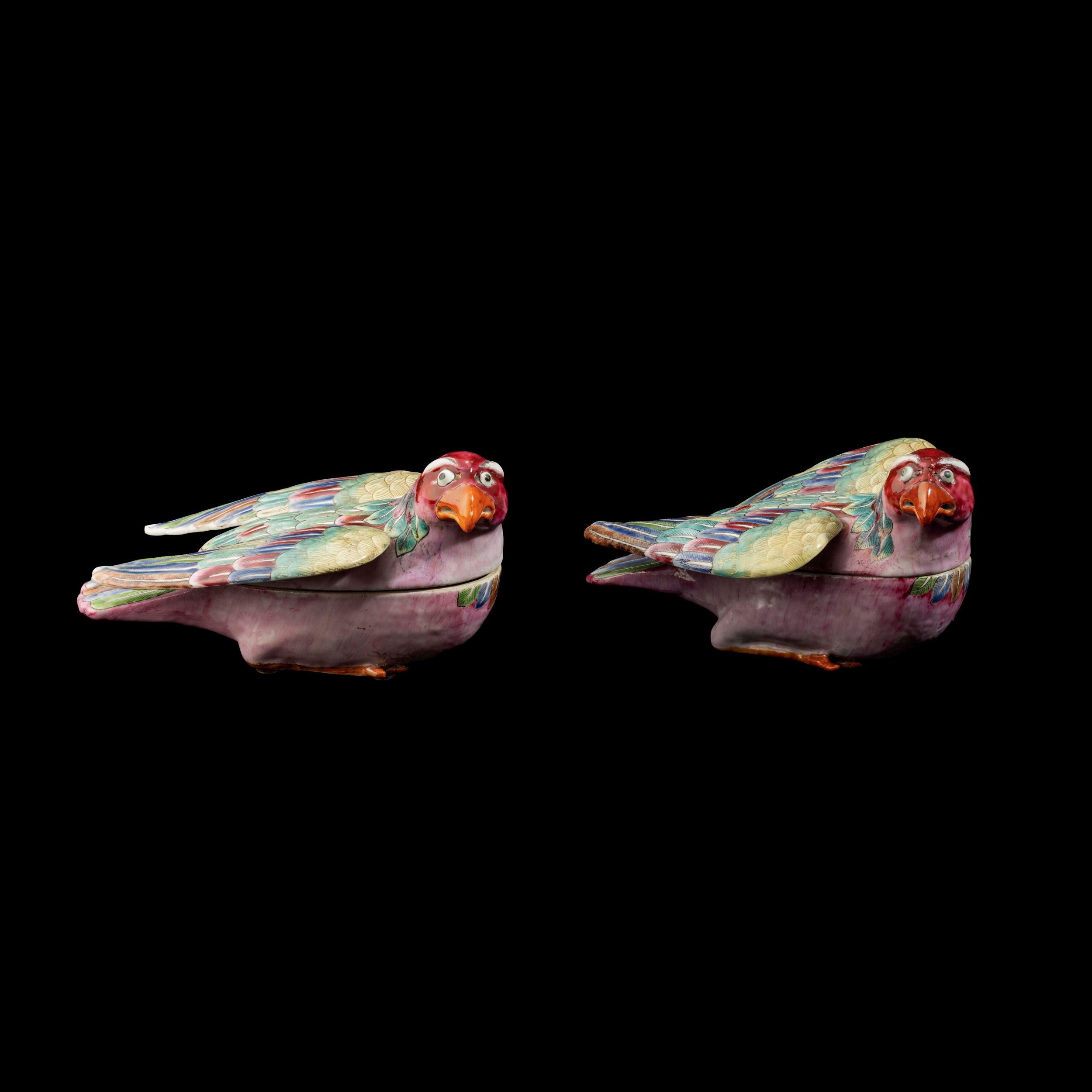Coppia di colombine in porcellana Famiglia Rosa decorate con smalti e oro, Cina, [..]