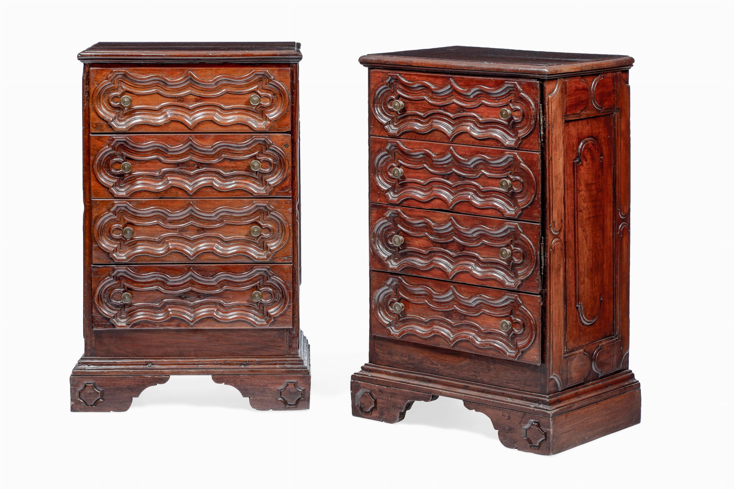 Coppia di comodini in noce intagliato. XVII-XVIII secolo