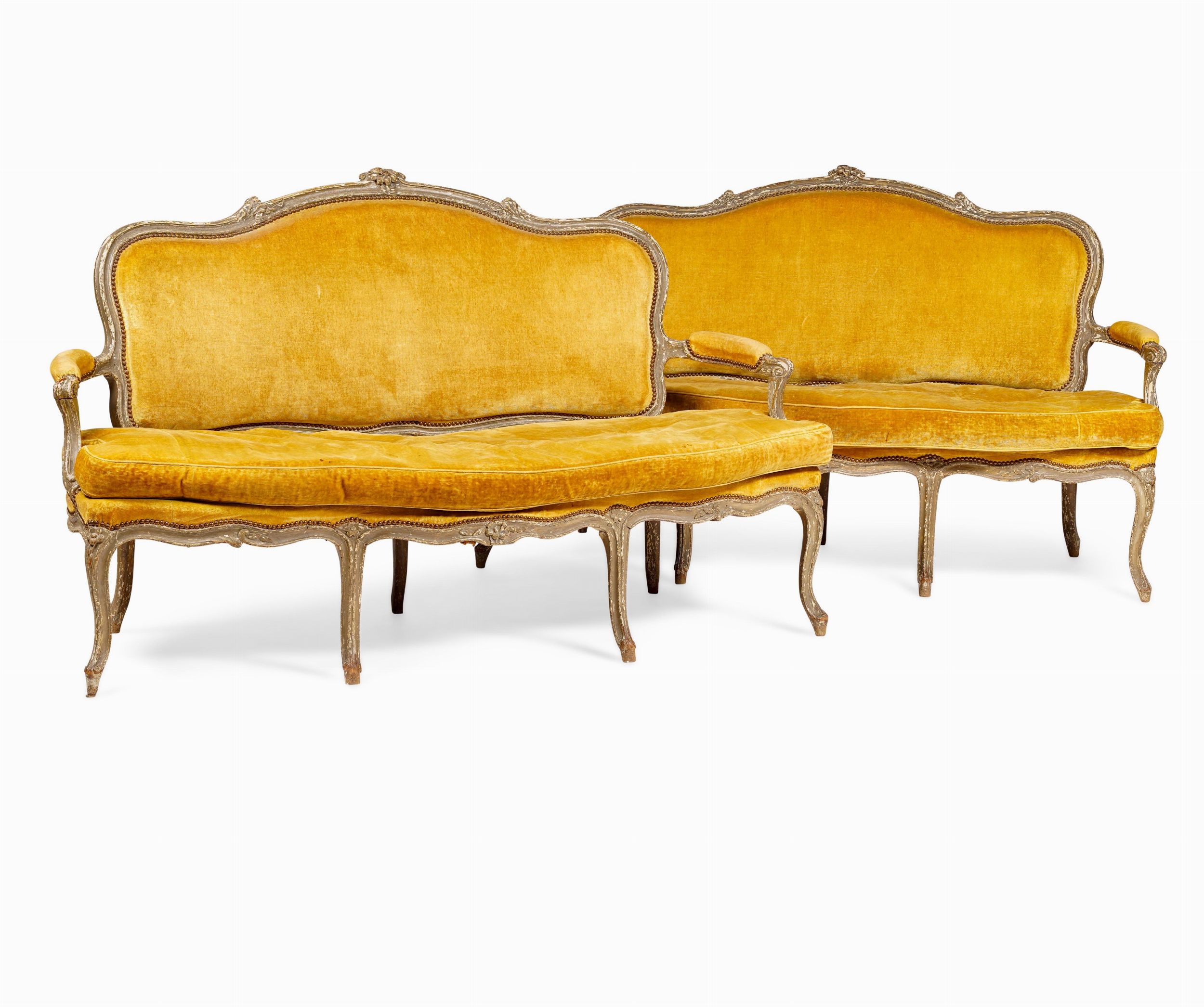 Coppia di divani in legno intagliato e laccato. XVIII secolo