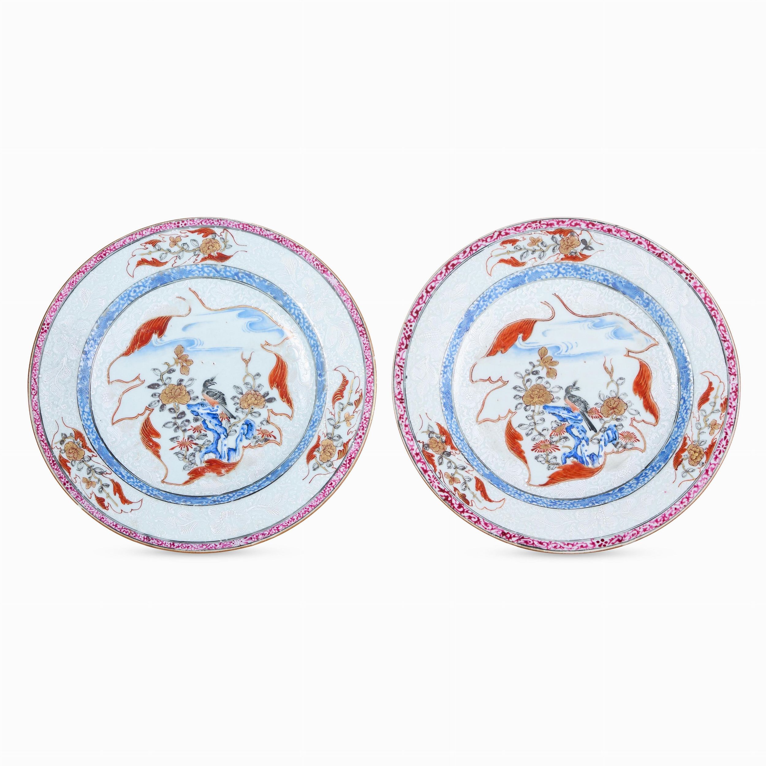 Coppia di piatti in porcellana Famiglia Rosa con decoro naturalistico, Cina, Dinastia [..]