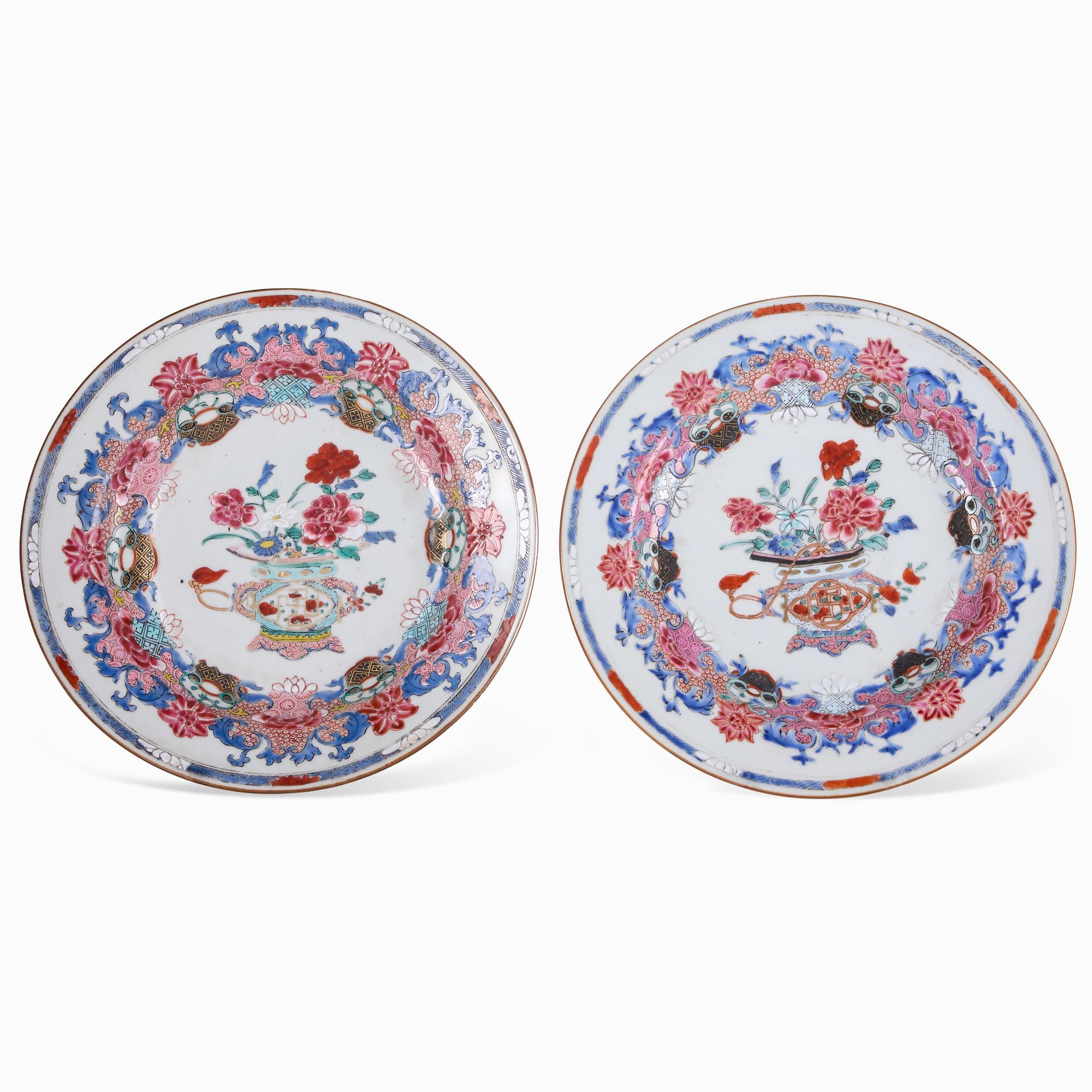 Coppia di piatti in porcellana Famiglia Rosa con soggetto naturalistico e decori [..]