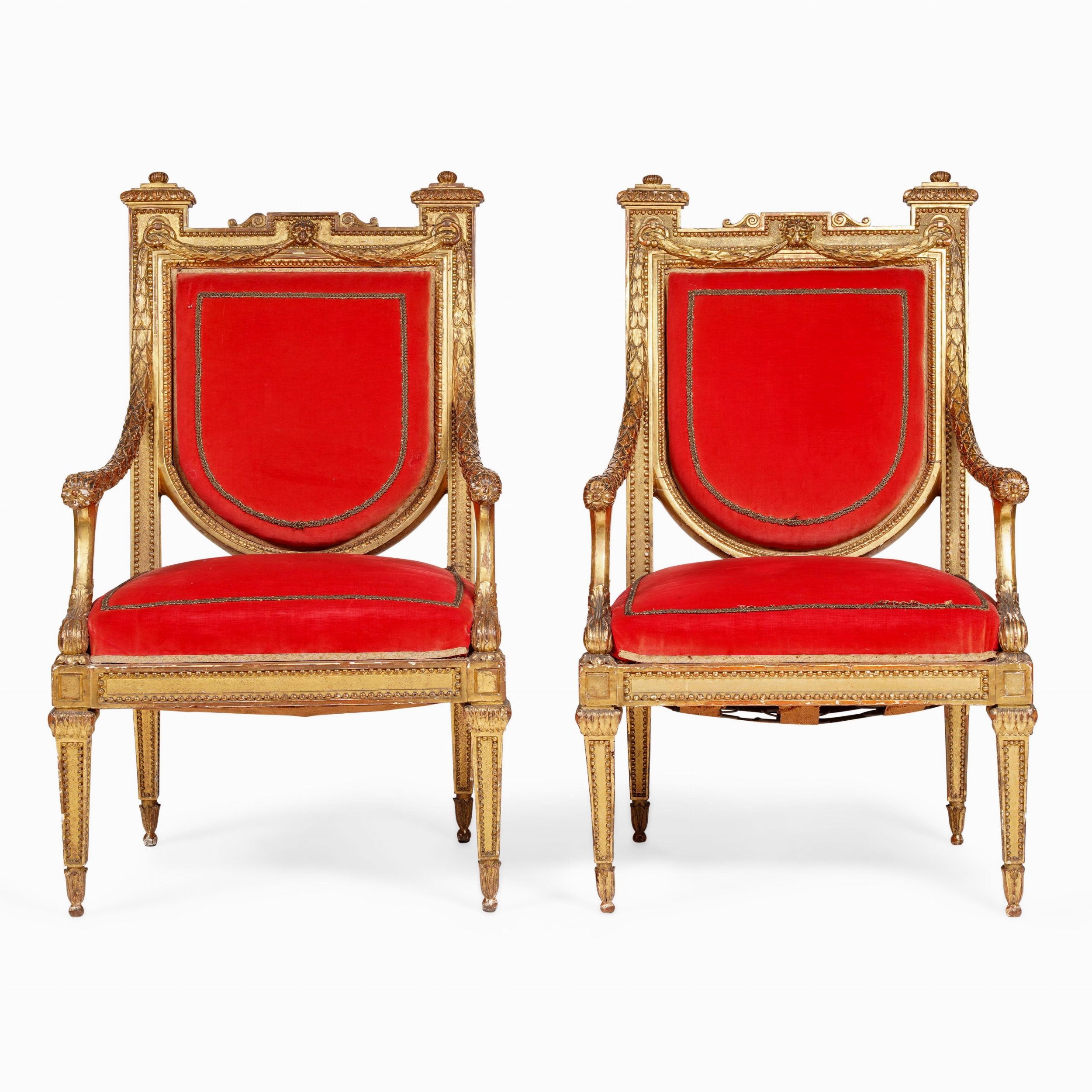 Coppia di poltrone in legno intagliato e dorato. XVIII-XIX secolo