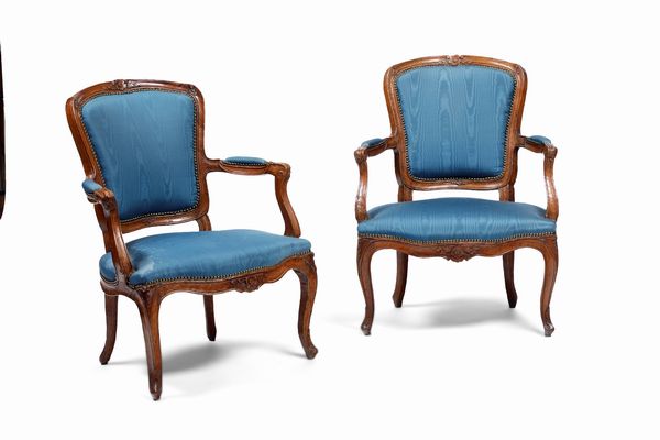 Coppia di poltrone in noce intagliato. Genova XVIII secolo