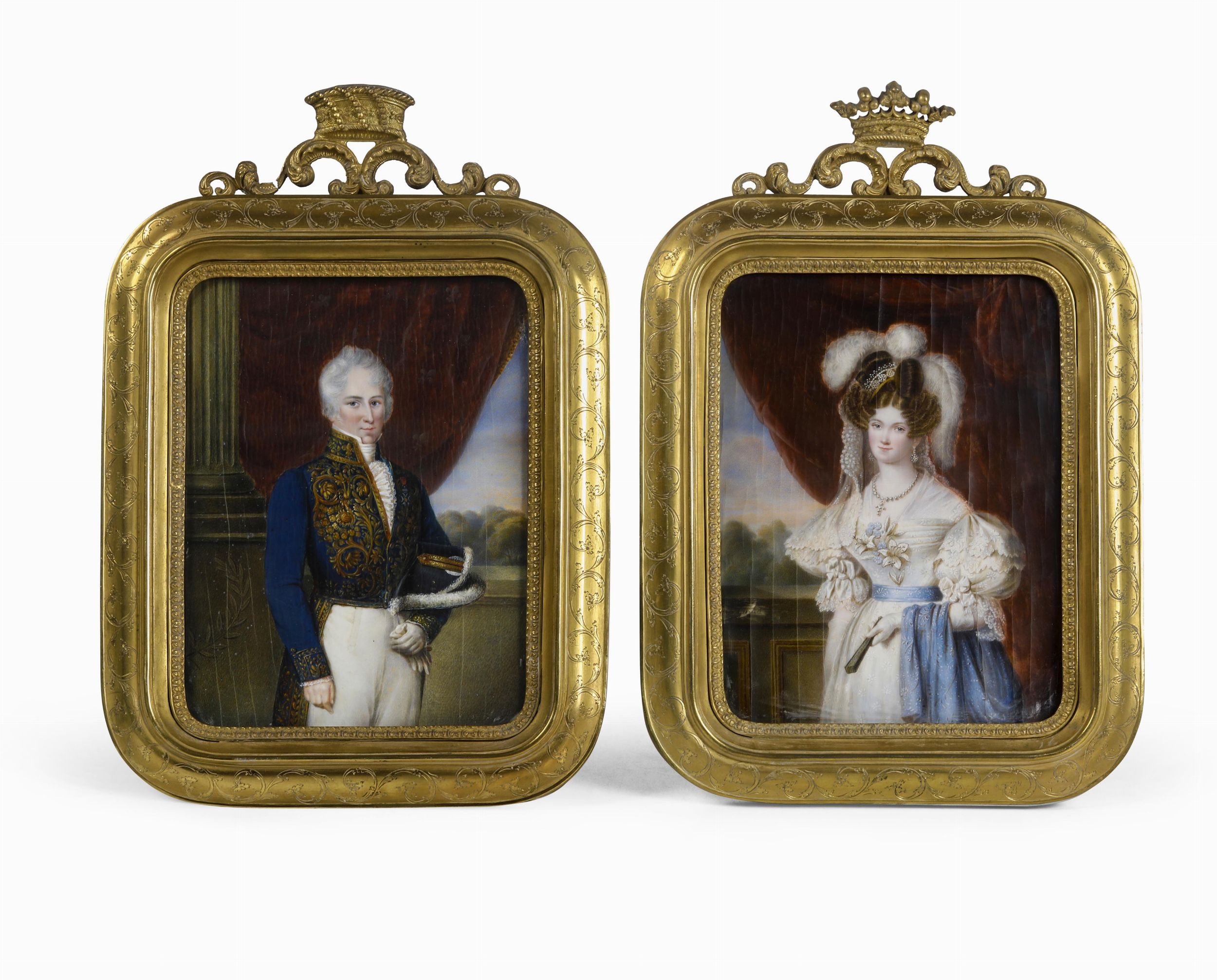 Coppia di ritratti della nobiltà francese a firma Giraud. Francia XIX secolo