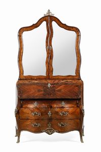 Largh. 123 - Prof. 56 - Alt. 243 Cm Fronte a doppia mossa, intarsiato con il quadrifoglio sul fronte, sulla ribalta, [..]