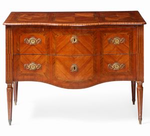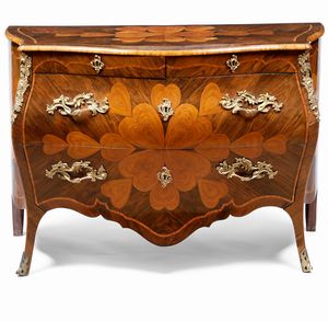 Largh. 132 - Prof. 61 - Alt. 90 Cm Quadrifogli intarsiati sul fronte, sui fianchi e sul piano, fronte bombato [..]