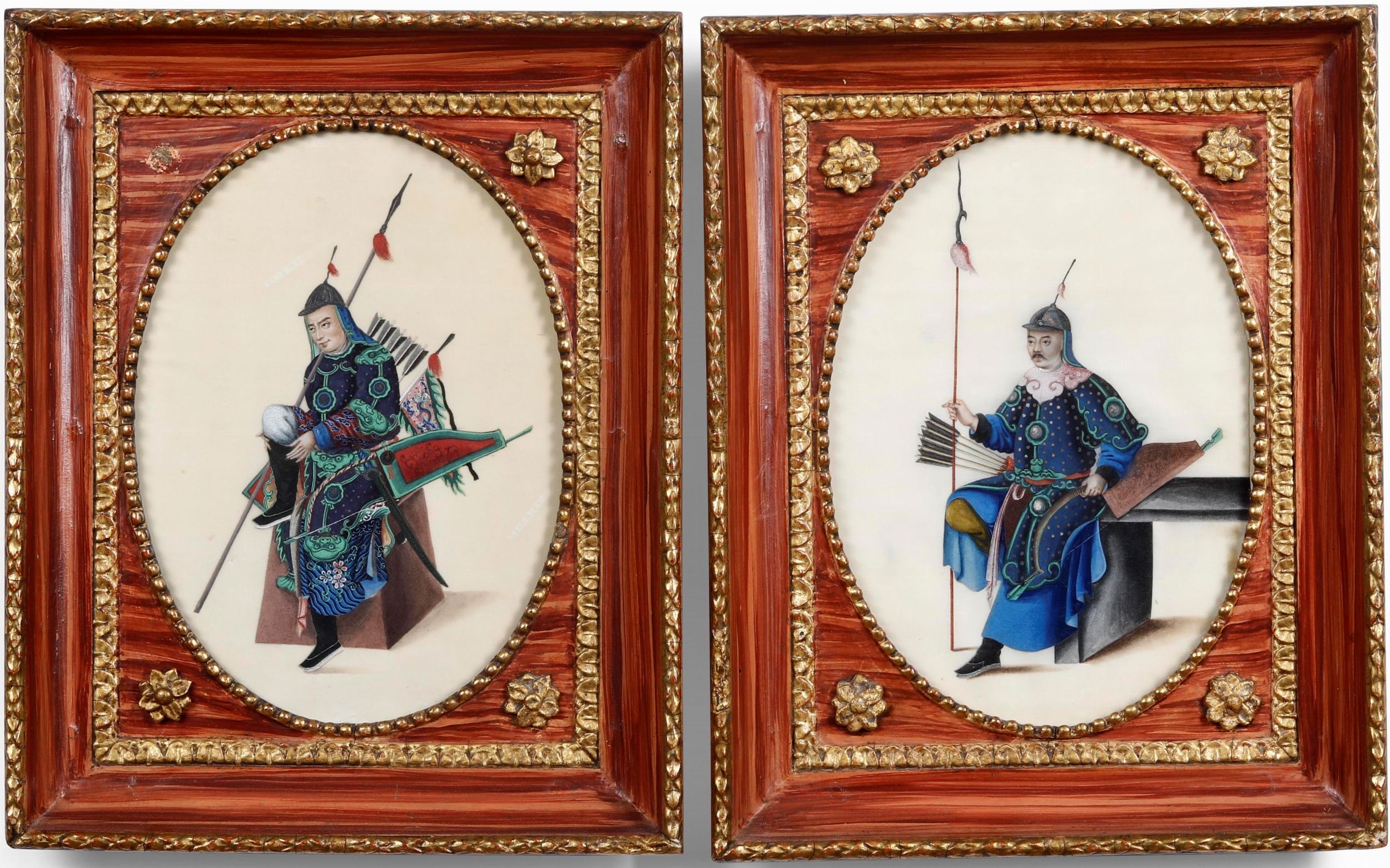 Due dipinti raffigurante arciere su carta di riso, Cina, Dinastia Qing, XIX seco [..]