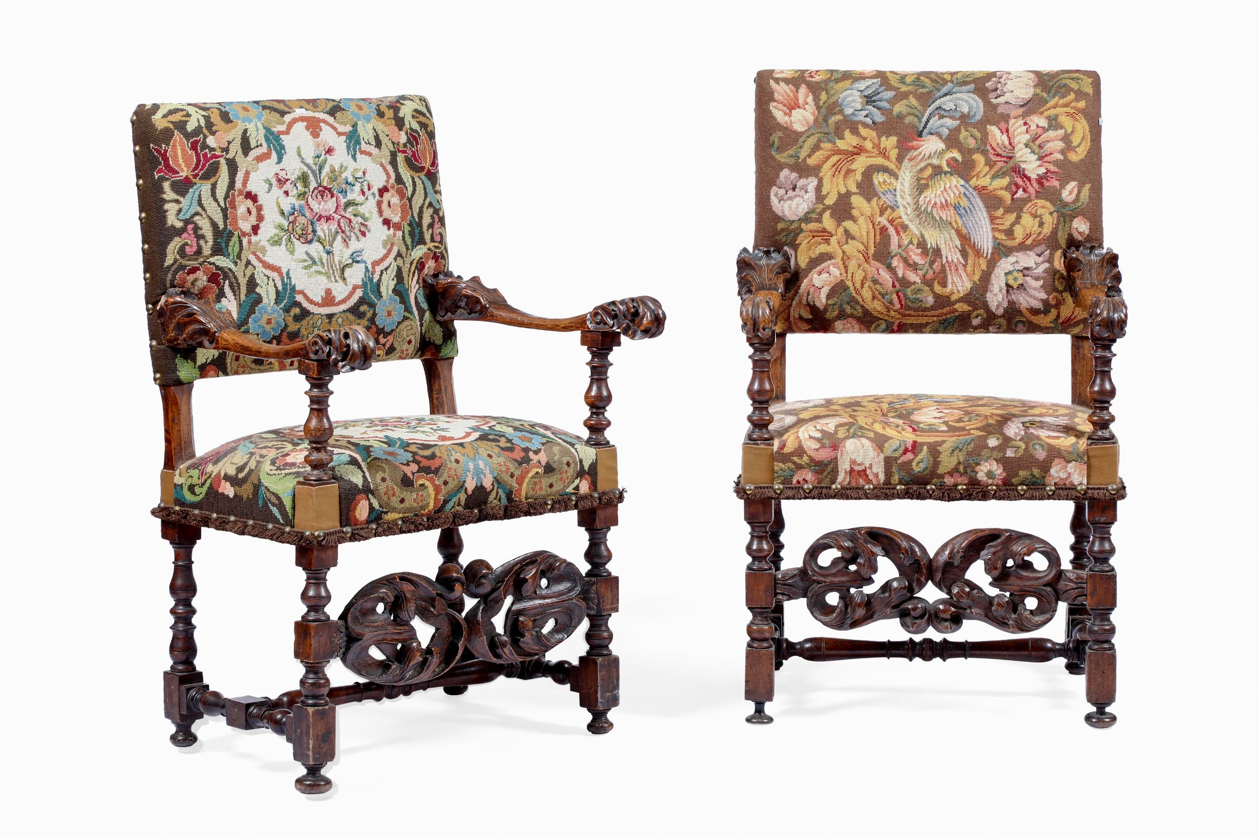 Due poltrone in noce intagliato. XVII-XVIII secolo