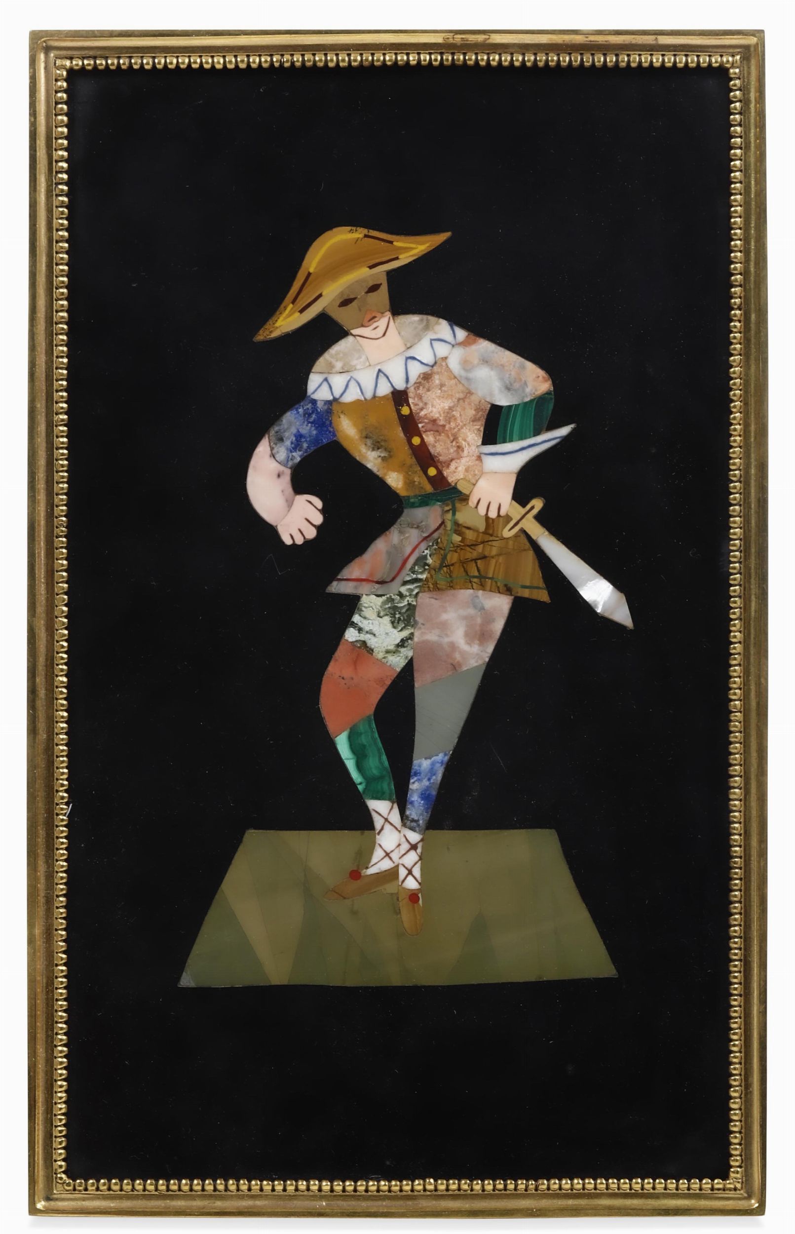 Grande mattonella in commesso di pietre tenere e dure su fondo in nero del Belgio [..]