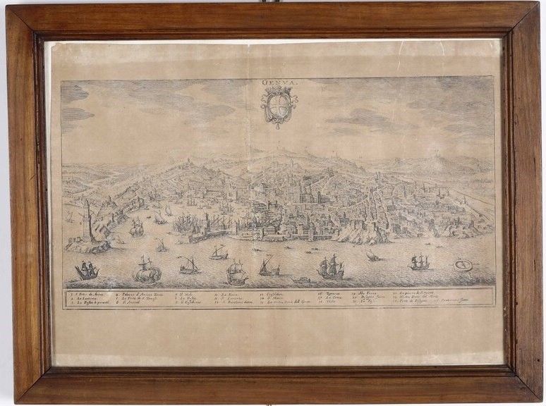 Incisione raffigurante veduta di Genova. XIX secolo