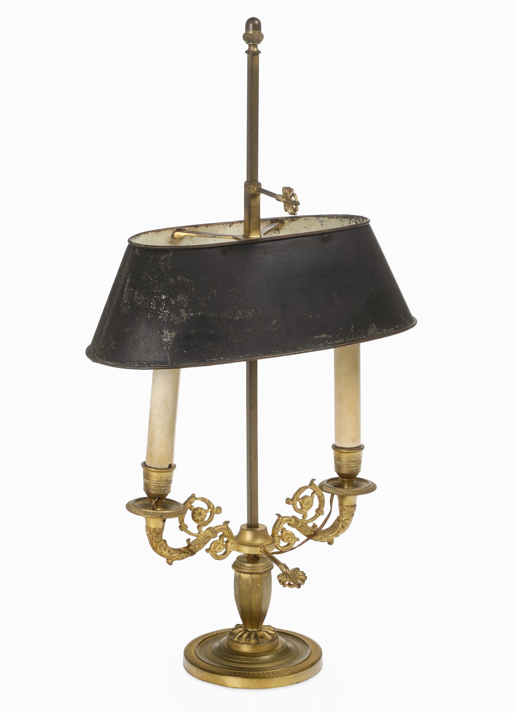 Lampada bouillotte in bronzo dorato, XIX secolo
