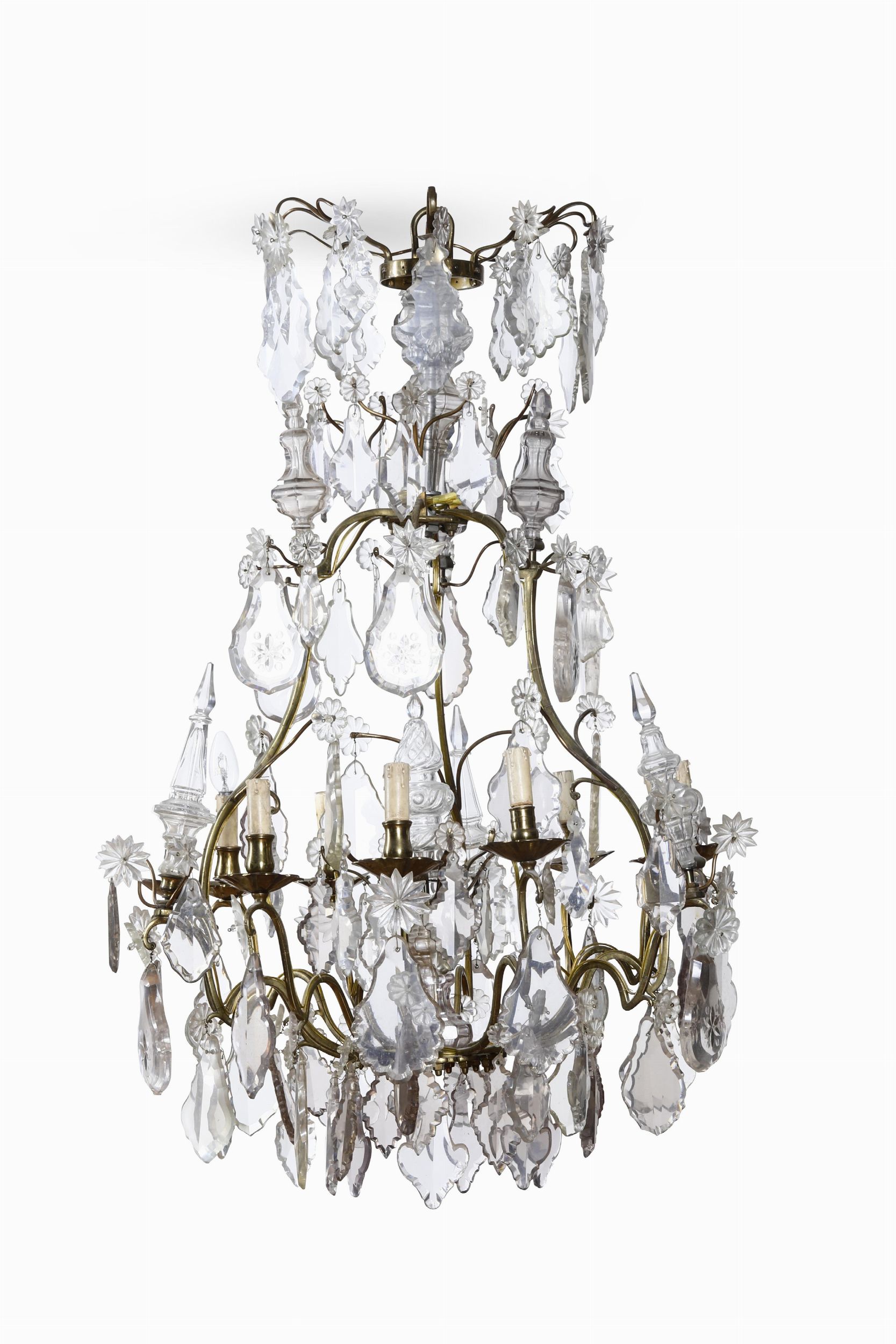 Lampadario a otto luci in metallo e cristalli. XIX-XX secolo