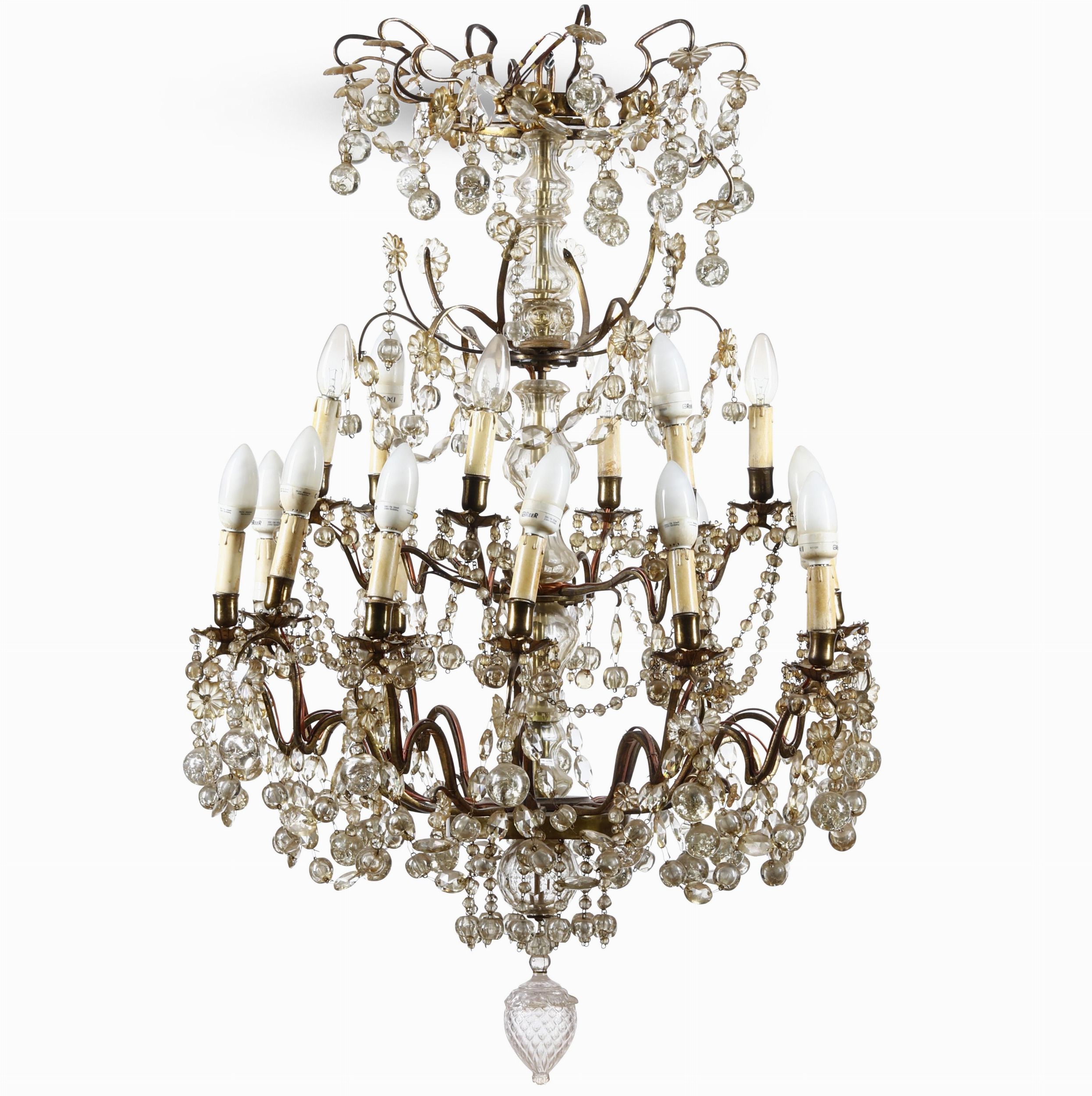 Lampadario in metallo e cristalli. XIX-XX secolo