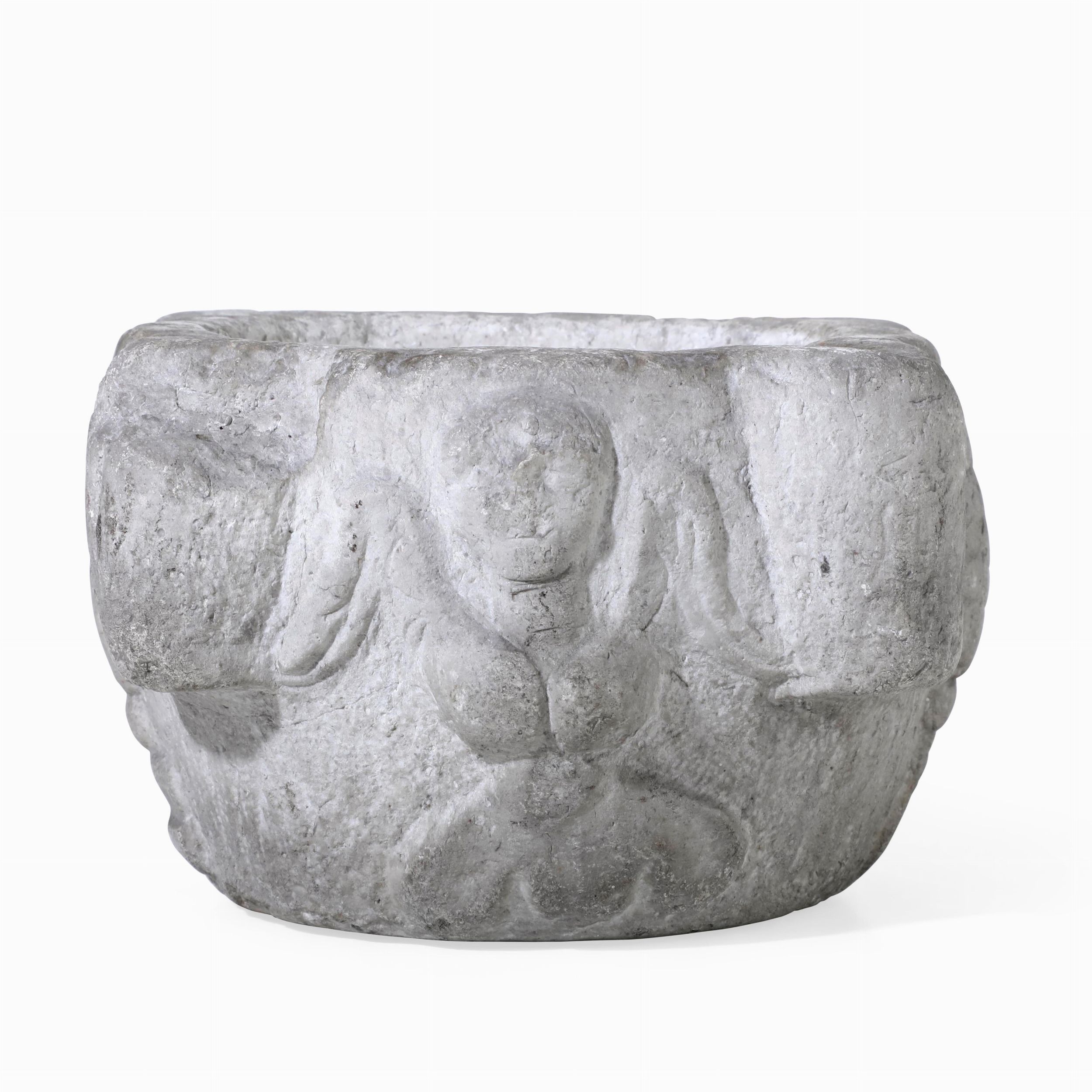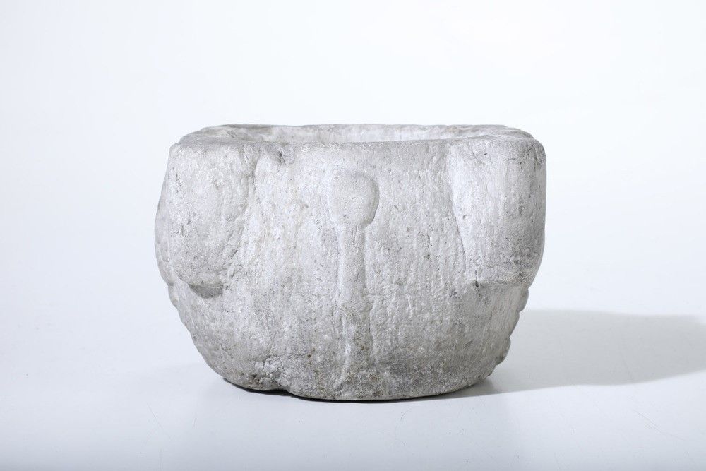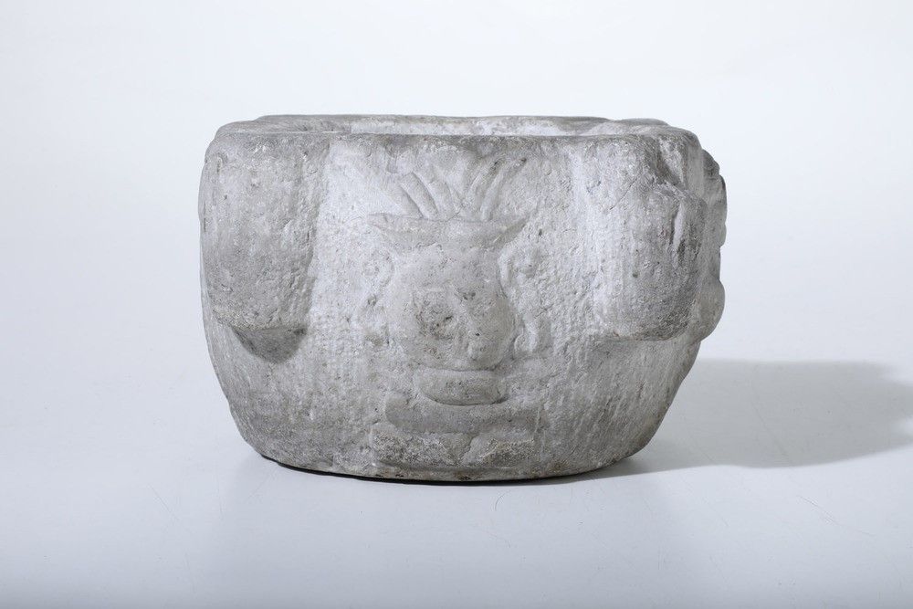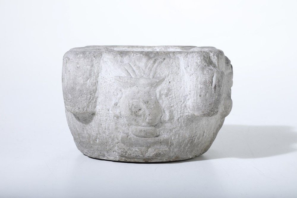 Mortaio in pietra scolpita. Lapicida del XVI secolo