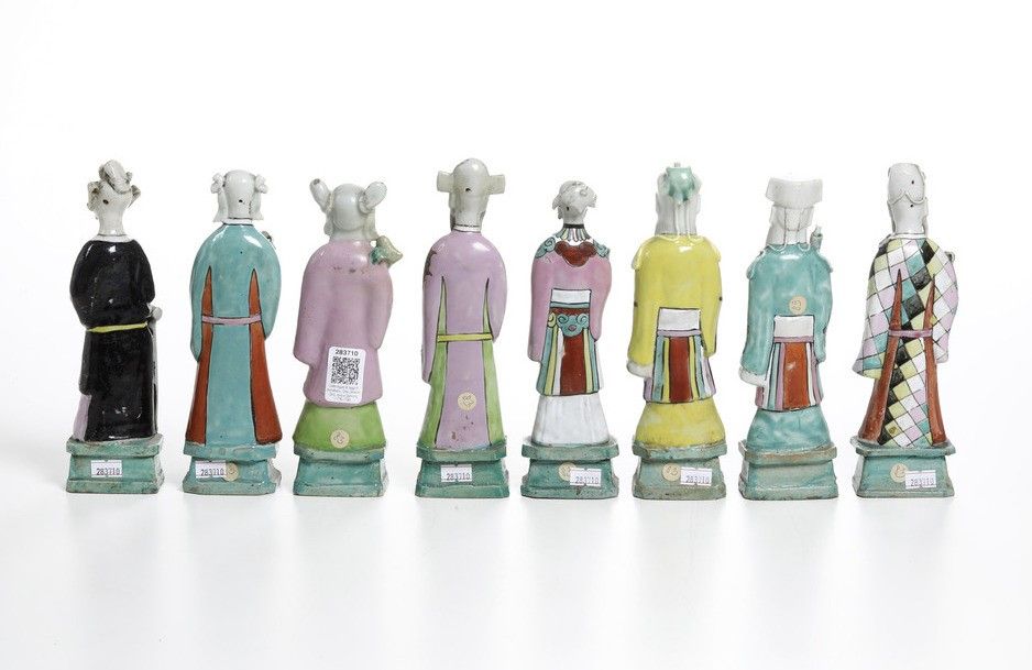 Otto figure di saggi in porcellana, Cina, Dinastia Qing, epoca Qianlong (1736-17 [..]