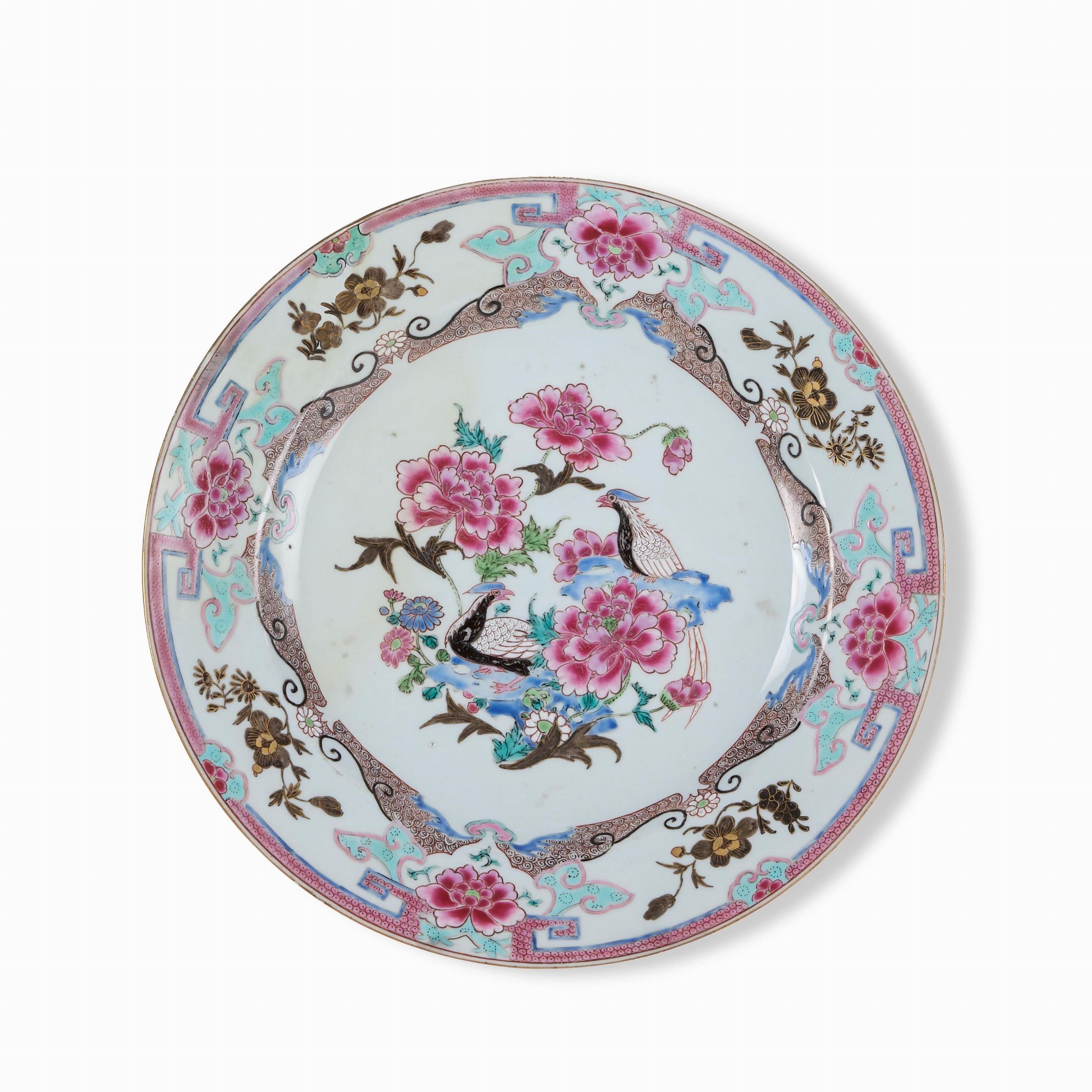 Piatto in porcellana Famiglia Rosa con decoro di peonie in fiore, Cina, Dinastia [..]