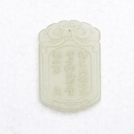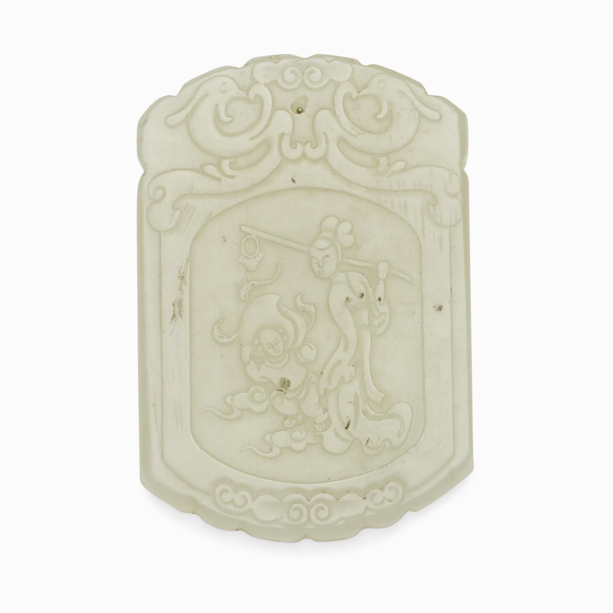 Placchetta in giada bianca scolpita con immagini di vita comune, Cina, XIX secol [..]