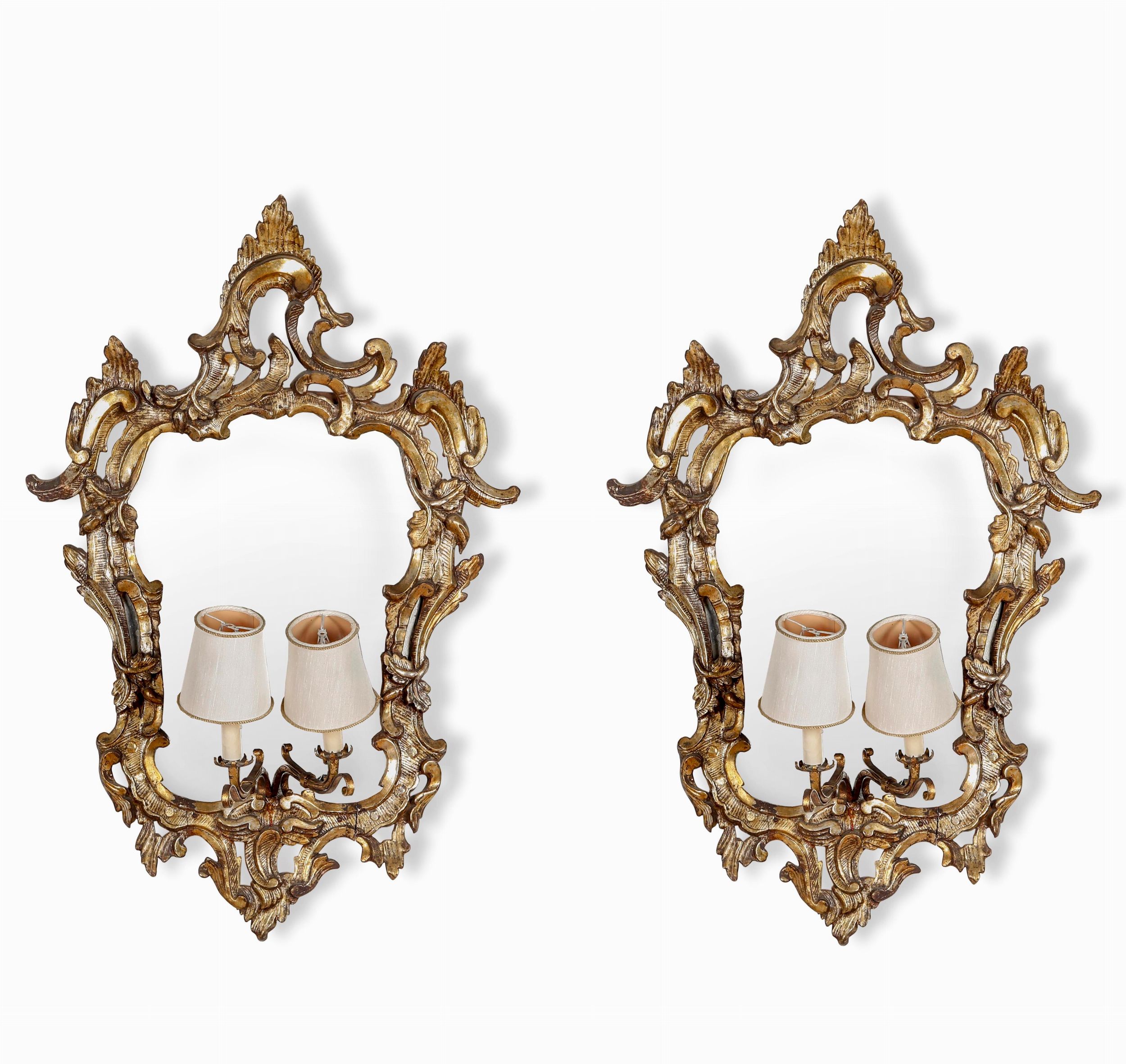 Quattro specchiere in legno intagliato, traforato e dorato.Genova XVIII secolo