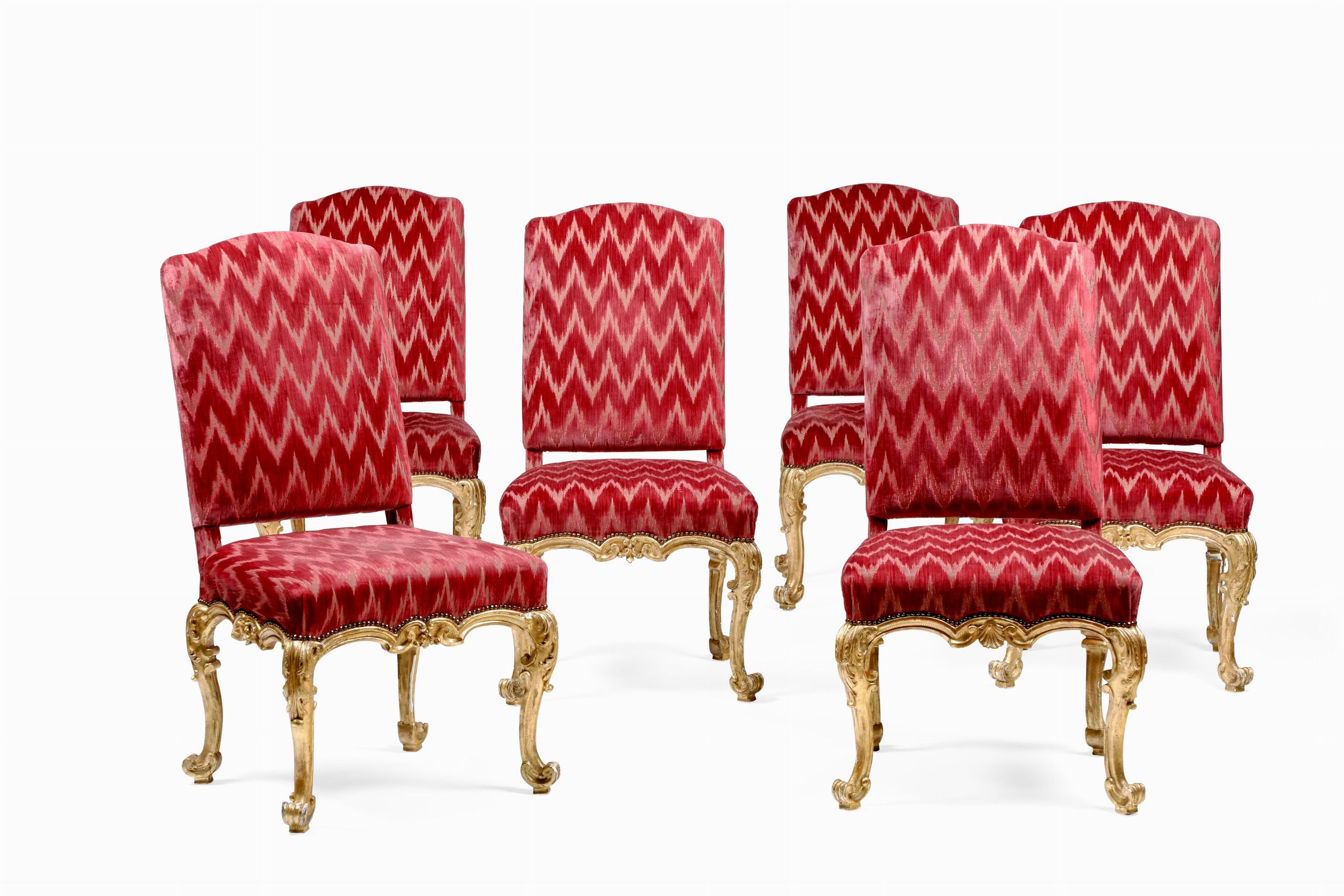 Sei sedie in legno intagliato e dorato. XVIII secolo