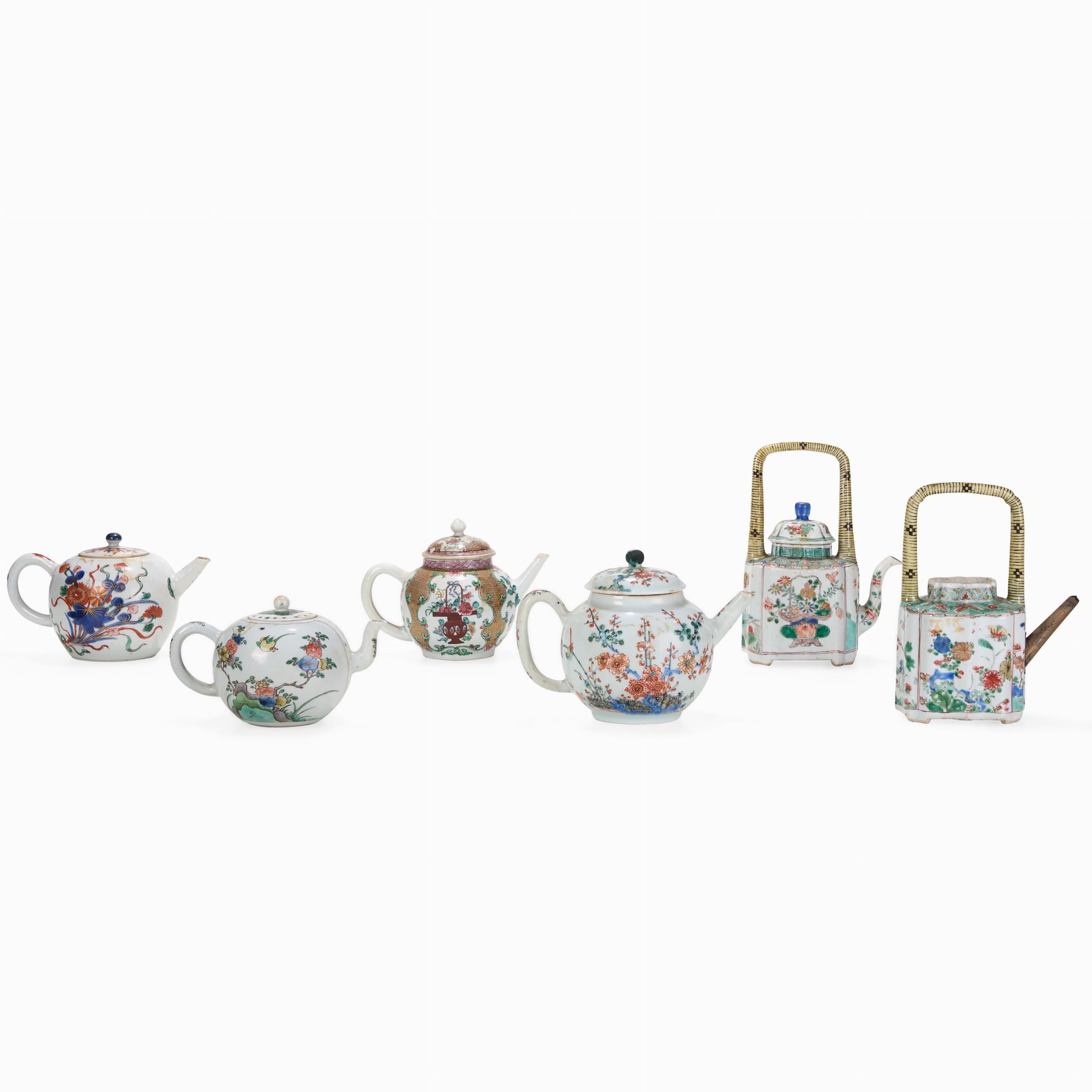 Sei teiere diverse in porcellana a soggetto naturalistico, Cina, Dinastia Qing, [..]