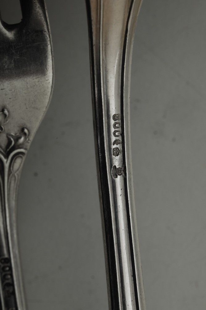Servizio di posate da dolce. Argenteria tedesca del XX secolo