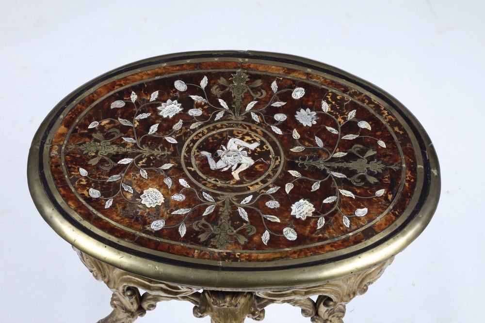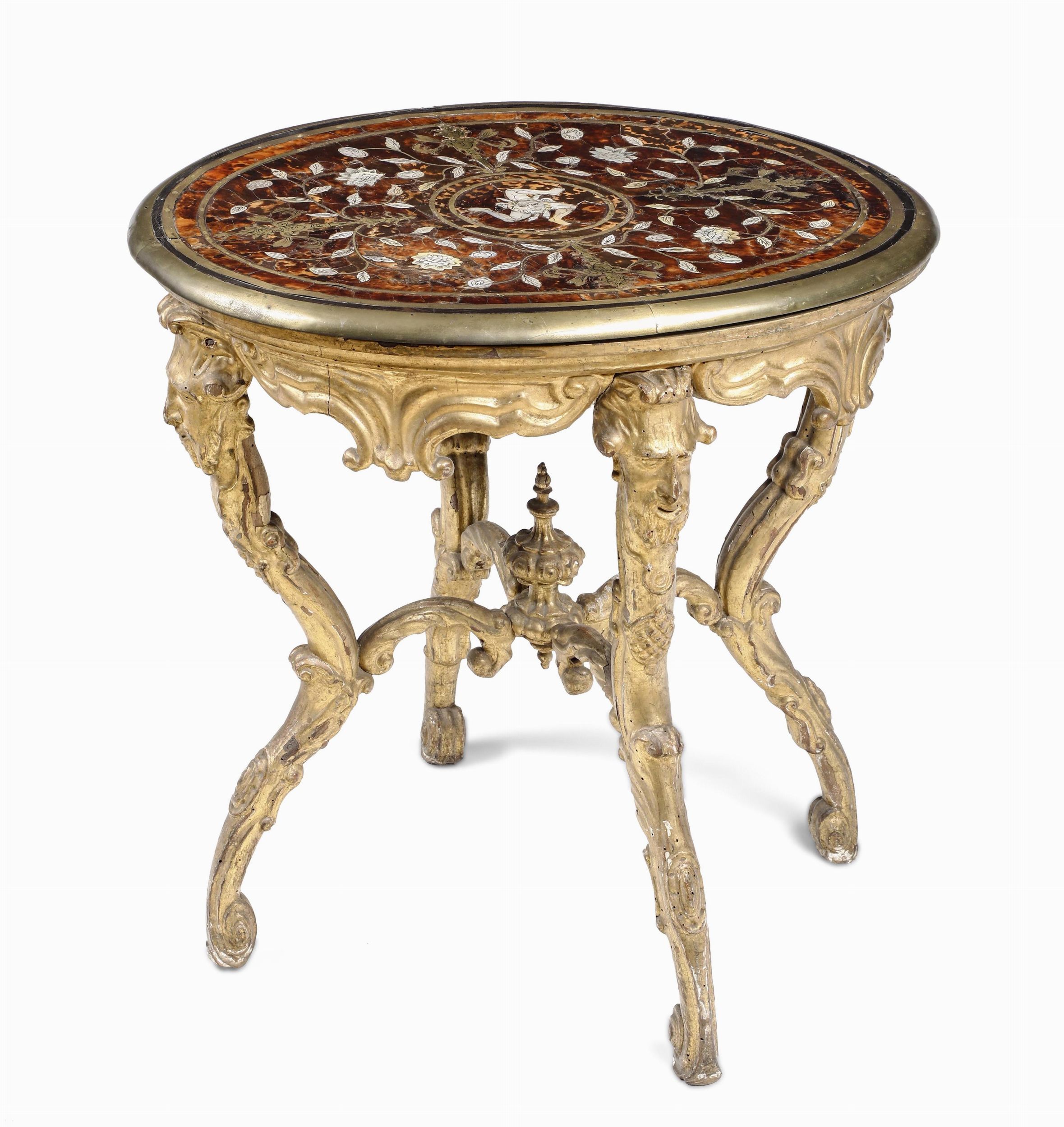 Tavolino da centro in legno intagliato e dorato. XVIII secolo