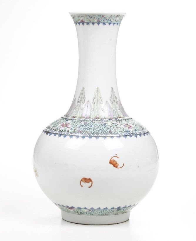 Vaso a bottiglia con decoro floreale famiglia Rosa in porcellana, Cina, Dinastia [..]