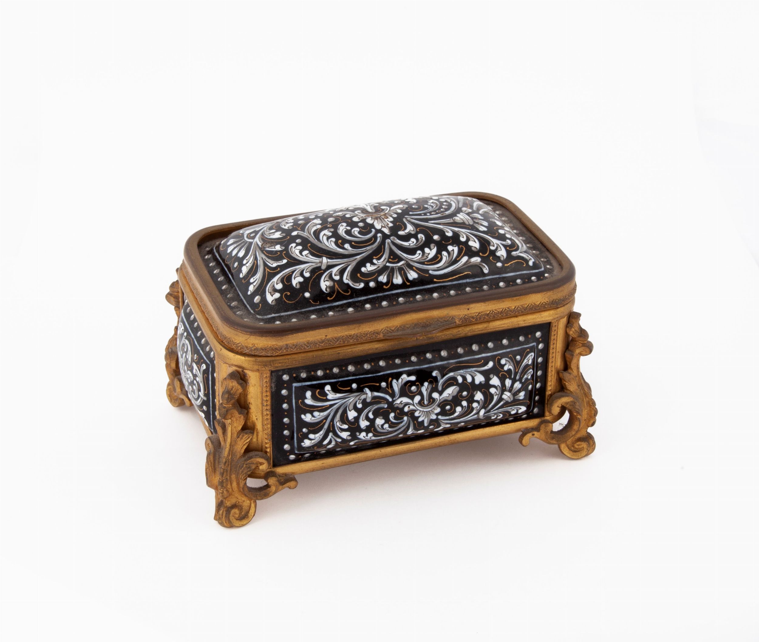 Cofanetto portagioie in bronzo dorato e smalti, prima metà del XIX secolo