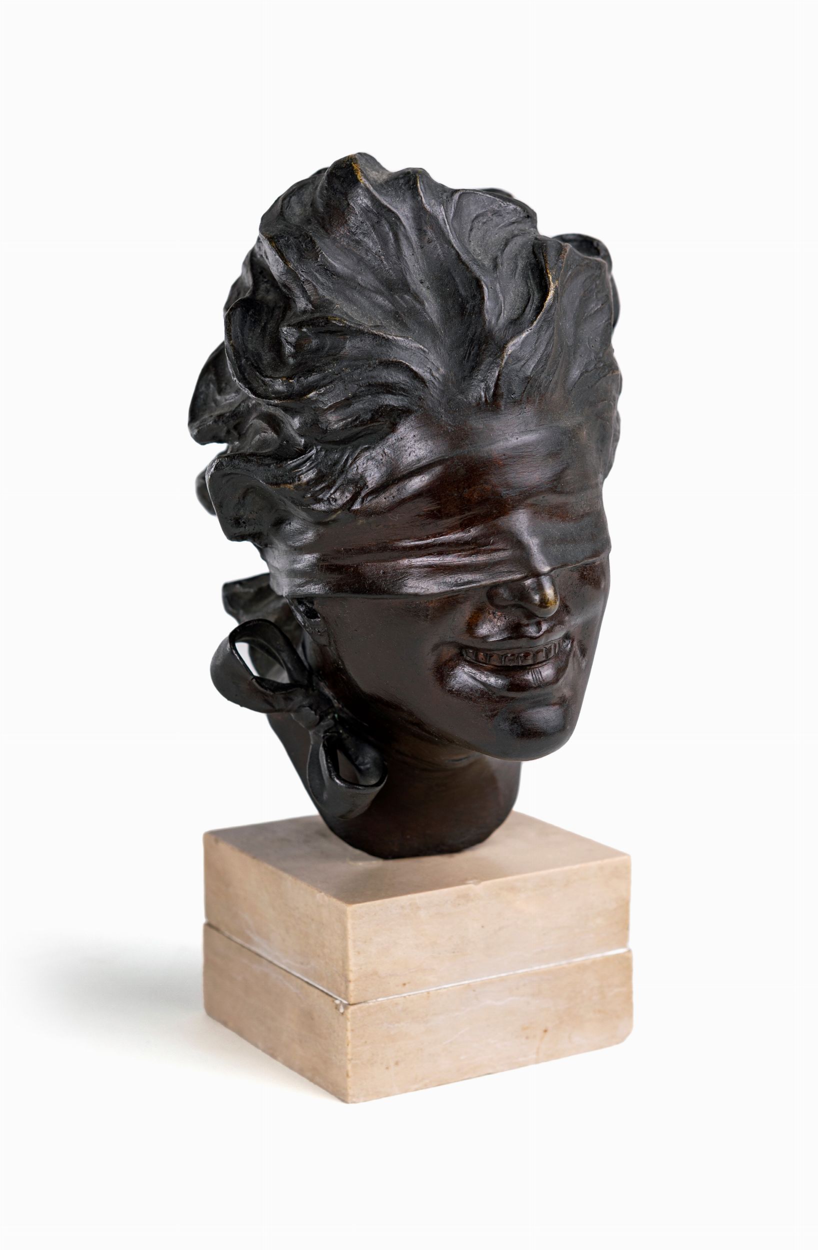 su piedistallo a dado in travertino. Firmata V. Aurisicchio