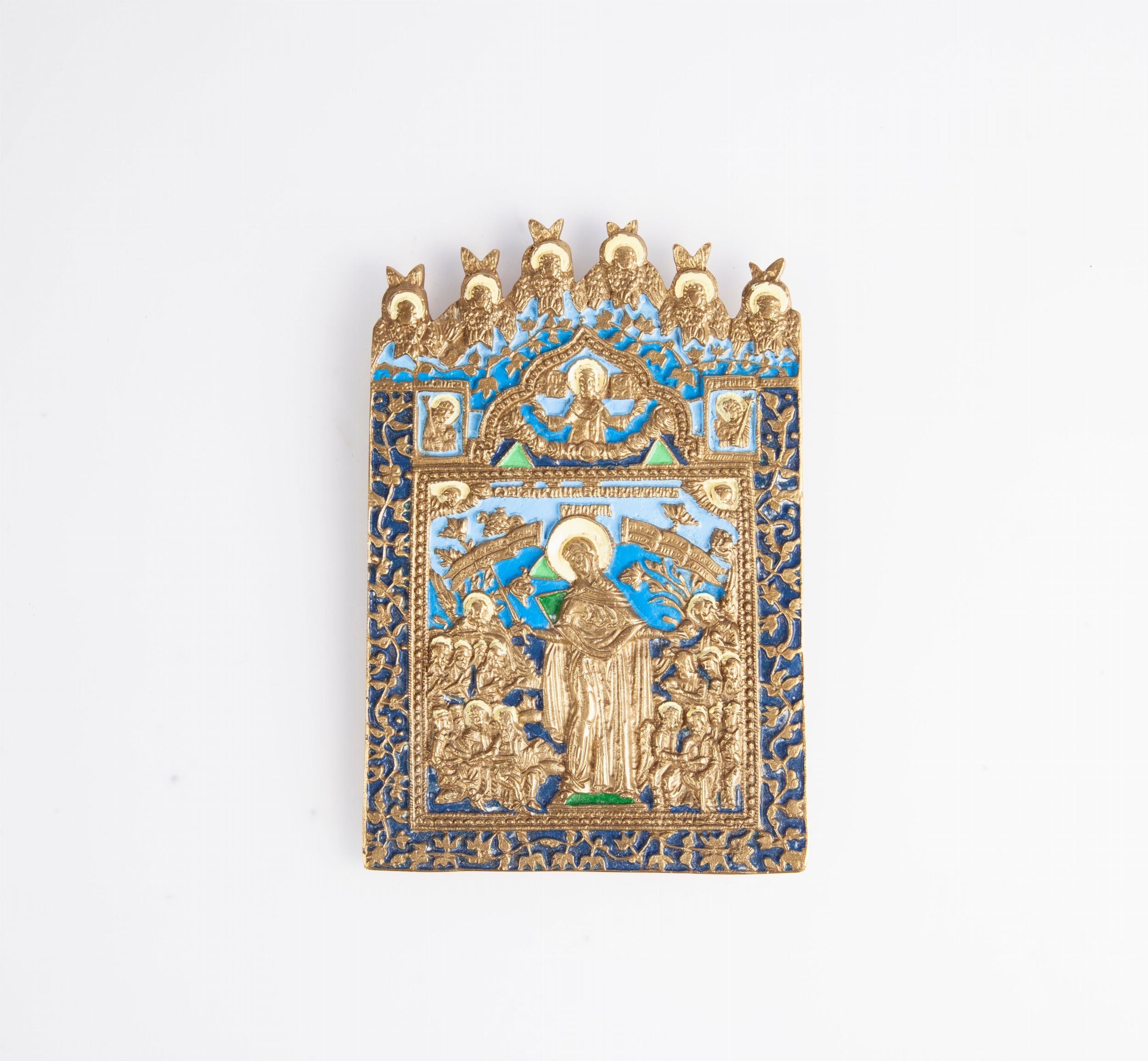 Icona in bronzo dorato e smalti, Russia, XIX secolo