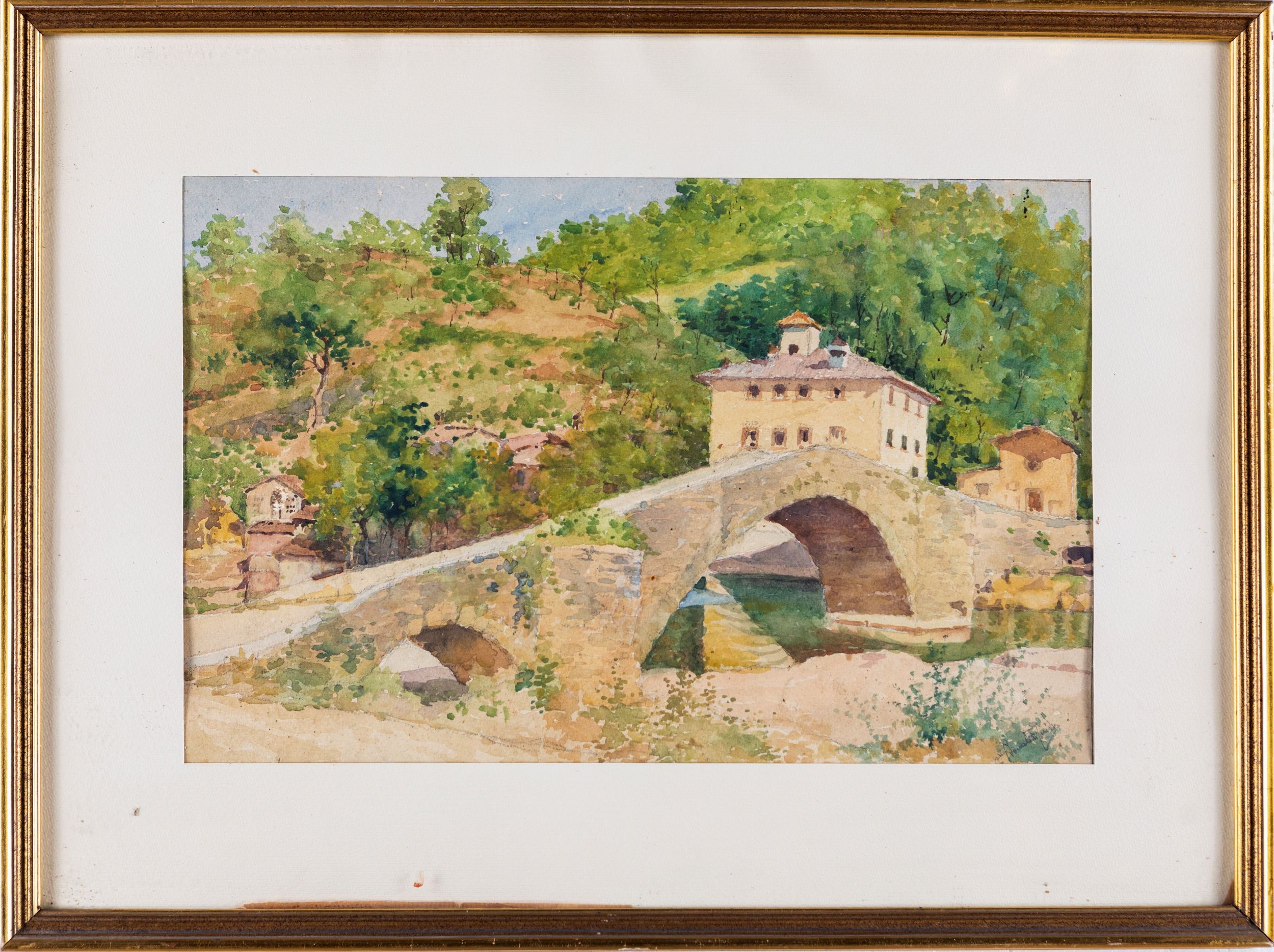 Titolo (Il Ponte a Vicchio) e firma illegibile coperti dal passepartout