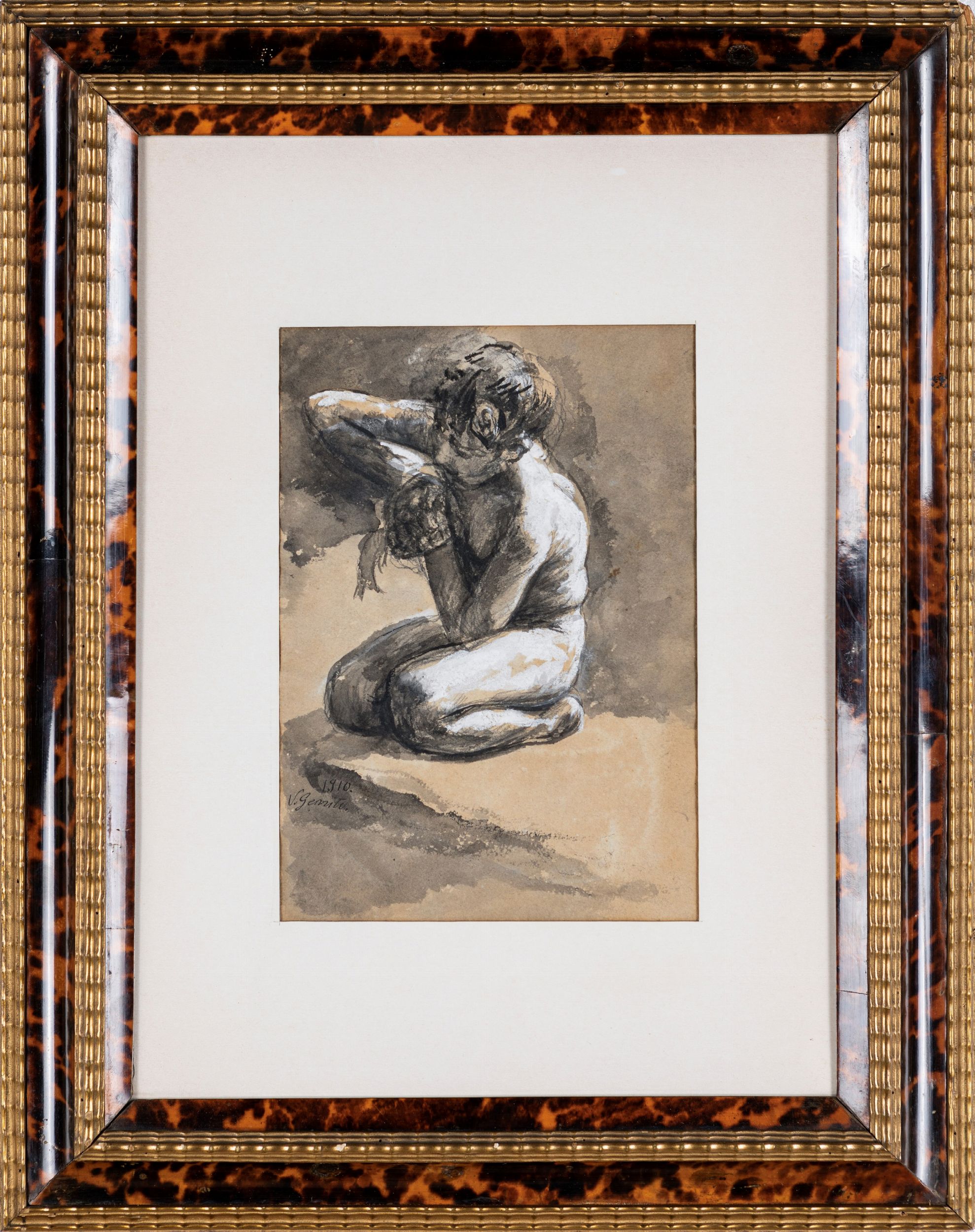 tecnica mista su carta, cm 18 x 24 ca - in cornice novecentesca con attaccaglia in bronzo cm 37x47