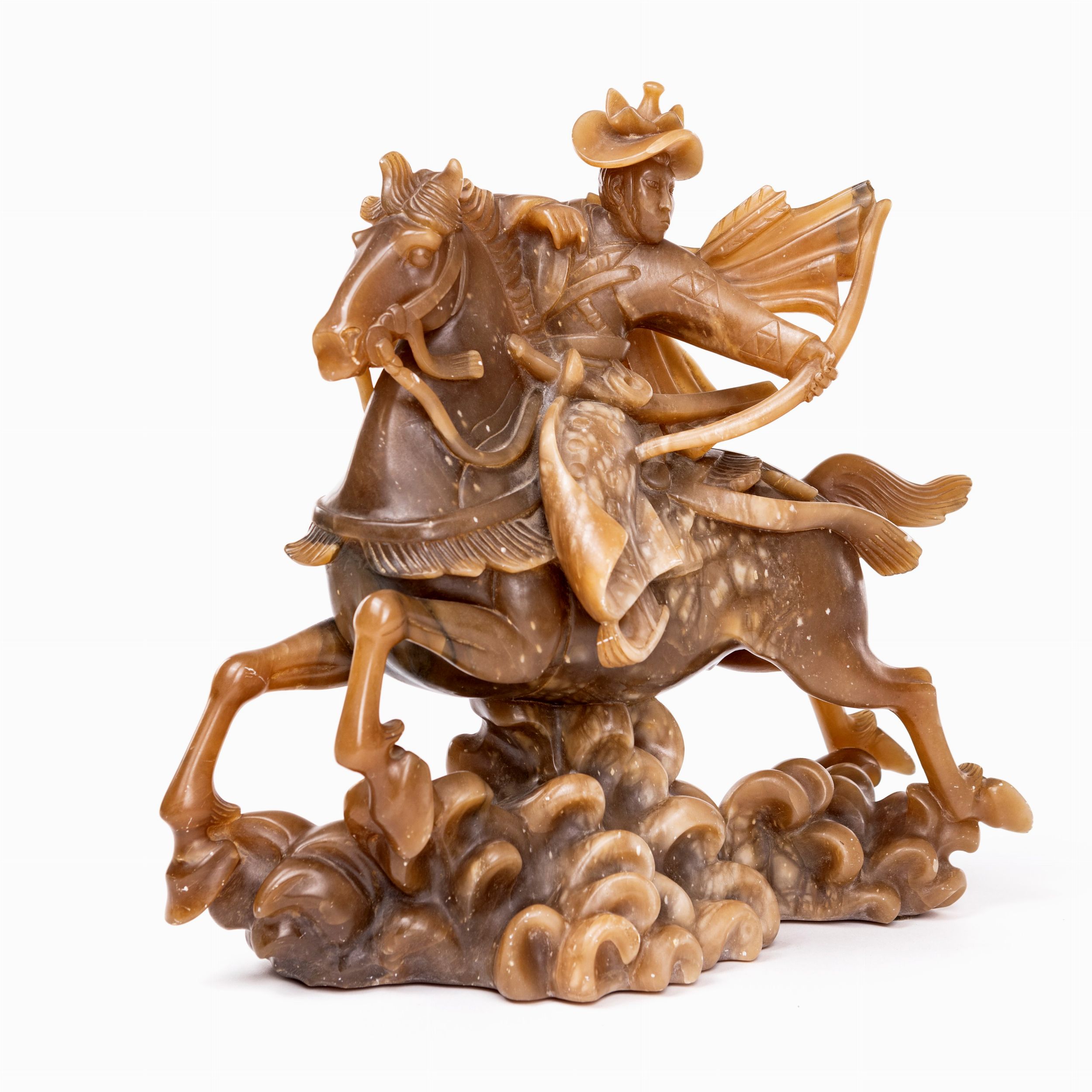 raffigurante un arciere mongolo a cavallo su base intagliata in forma di nubi a cumuli