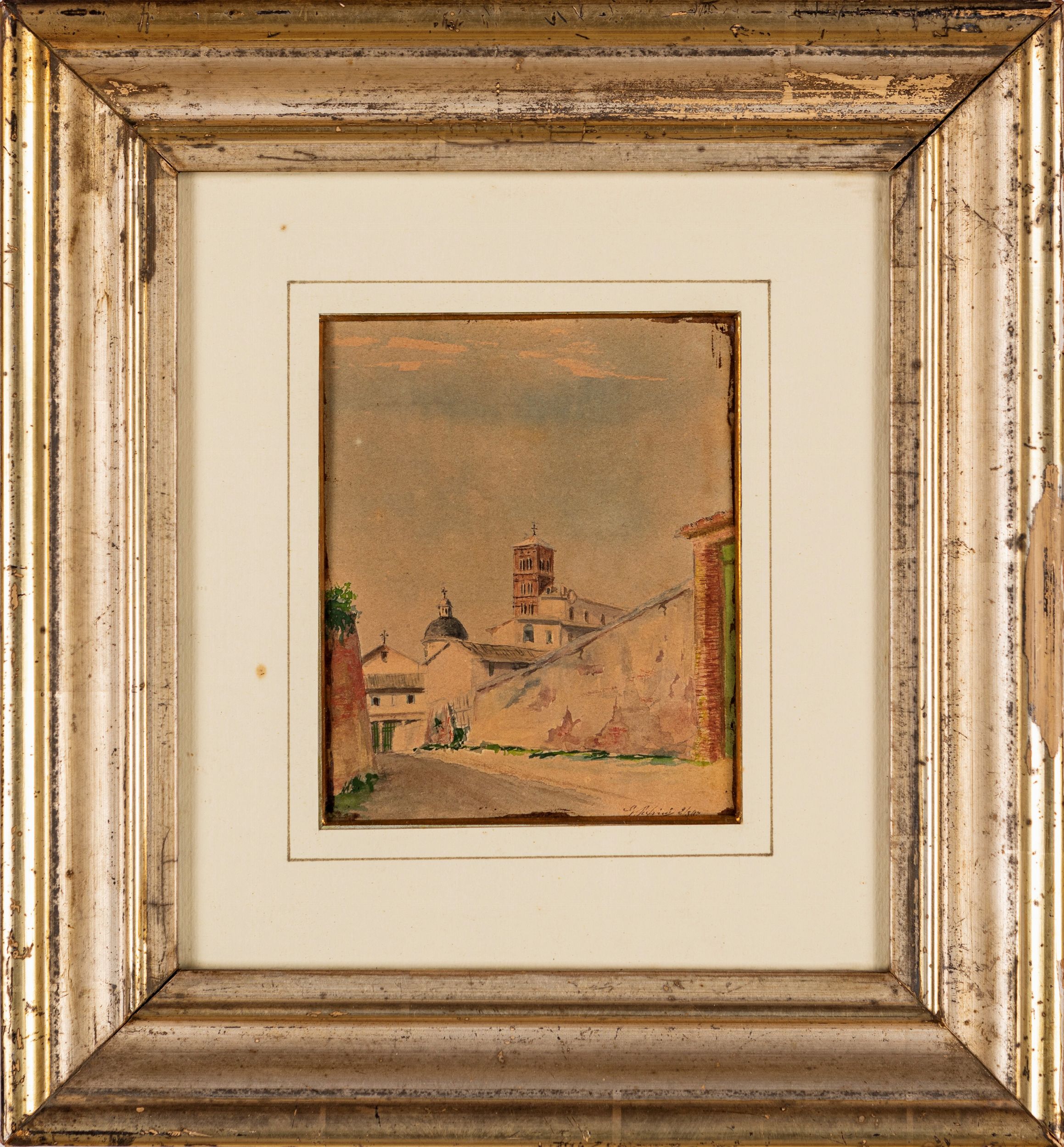 acquerelli su carta, cm 13,5x16,5 in cornice antica cm 36x33