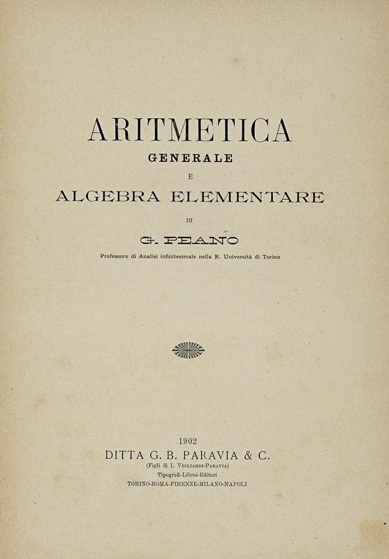 Con la dedica di Peano a Pensa, Torino: Paravia, 1902.