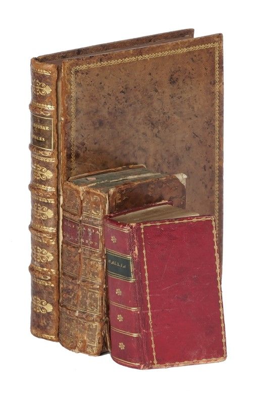 In-12° (mm 125x70). Copia con difetti, parzialmente sfascicolata e con alcune delle carte staccate. Legatura coeva in piena pelle con titolo in oro su tassello al dorso. Mancanze lungo le unghiature e il dorso. SI AGGIUNGONO: Balduini Diacono, Gallia sive de francorum regiis dominiis et opibus Commentarius. Lugduni Batavorum: ex officina Elzeviriana, 1629. Dousa Antonio, Bataviae hollandiaeque annales. Apud Christophorum Raphelengium: ex officina Plantiniana, 1601.