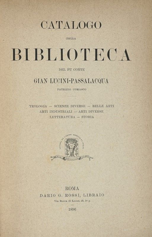Catalogo della Biblioteca del fu conte Gian Lucini-Passalacqua...