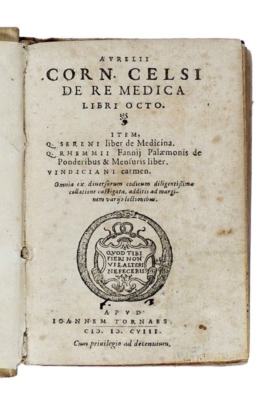 In-16° (mm 115x78). Pagine [32], 575, [1]. Marca xilografica al frontespizio e all'ultima carta. Pagine uniformemente brunite con fioriture sparse. Legatura in piena pergamena con titoli manoscritti al dorso e al taglio inferiore. Antica nota manoscritta al foglio di guardia anteriore.