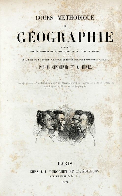 6 volumi in-4° grande (mm). Legatura coeva in piena pelle con titoli in oro al dorso. SI AGGIUNGE: Chauchard H., Cours methodique de géographie. Paris: Debochet et cie, 1859.