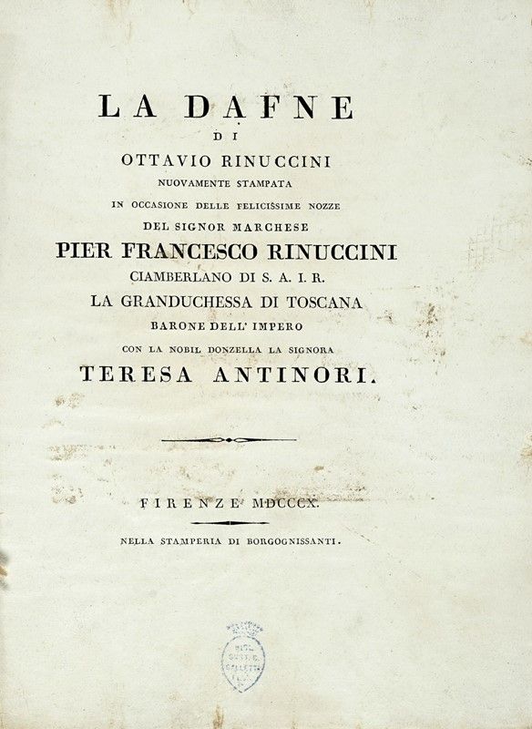 La Dafne [...] nuovamente stampata in occasione delle felicissime nozze del signor [..]