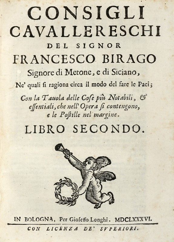 4 parti in 1 volume in-4° (mm 203x150). Ciascuna parte con il proprio frontespizio. Pagine [14], 151, [1]; [16], 1-64, 69-76, 81-115, [1]; [16], 195, [1]; [12], 78, [2] bianche. Assenti l'occhietto della prima parte e le carte E1, E2, E7, E8 della seconda parte. Marca xilografica ad ogni frontespizio e capilettera in legno nel testo. Lievi bruniture alle carte. Disegno a matita al foglio di guarda anteriore. Legatura in piena pergamena con titoli manoscritti al dorso. Mancanze alla cuffia inferiore.