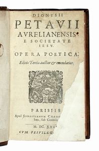 Compongono il lotto: 1) Petau Denis , Opera poetica . Parisiis: apud Sebastianum Cramoisy, 1621 (?). Difetti. [..]