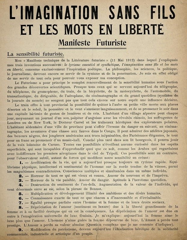 L?Imagination sans fils et les mots en liberté. Manifeste Futuriste.