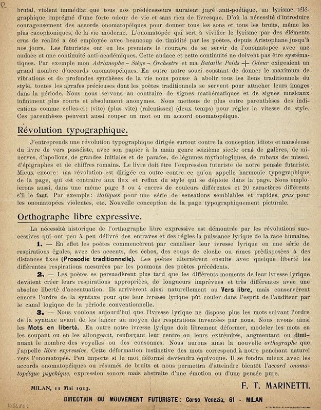 Milan: Direction du Mouvement Futuriste, 11 mai 1913.