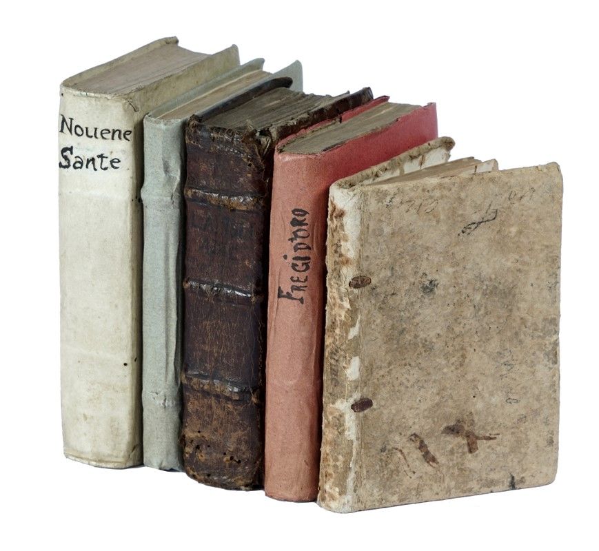 Compongono il lotto: 1) Murtola Gasparo, Della creatione del mondo. Macerata: Salvioni, 1618. 2) Biblia sacra veteris et novi testamenti. Paris: Keruer, 1573. 3) Manipulus curatorum volgare. Venezia: Bindoni, 1537. 3) Divi hieronymi sacrarum literarum... 1537. (al colophon, 1536). 4) Manipulus curatorum volgare. Venezia: Bindoni, 1537. 5) Dal Portico, Gli amori tra le persone di sesso diverso. Lucca, 1751. Elenco completo disponibile su richiesta.