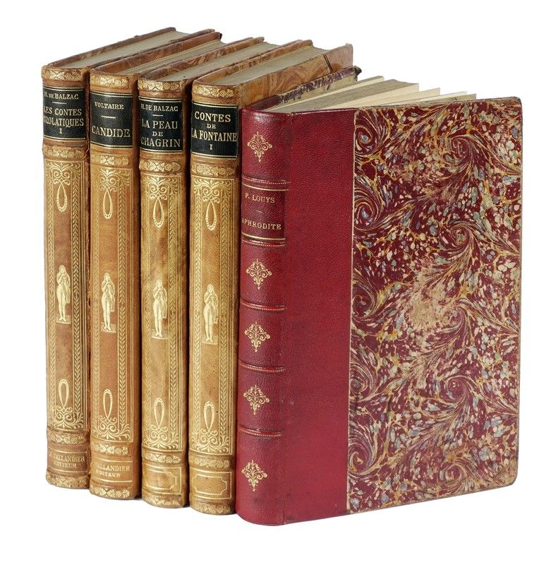Compongono il lotto: 1) Balzac Honoré (de), Les Contes Drolatiques [...] Tome premier (-troisième). Paris: Tallandier, s.d. (3 voll.) 2) La Fontaine Jean (de), Contes et Nouvelles en Vers [...] Tome premier (-deuxième). Paris: Tallandier, s.d. (2 voll.) 3) Rousseau Jean Jacques, Les Confessions [...] Tome premier (-troisième). Paris: Tallandier, s.d. (3 voll.) 4) Balzac Honoré (de), La peau de chagrin... Paris: Tallandier, s.d. 5) Voltaire, Candide ou l'optimisme... Paris: Tallandier, s.d. Elenco completo disponibile su richiesta.
